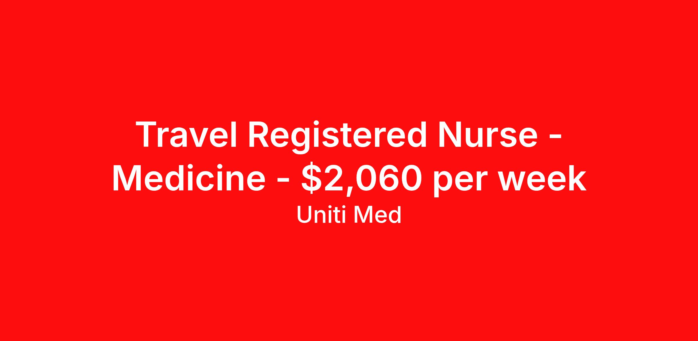 Travel Registered Nurse - Medicine - $2,060 per week