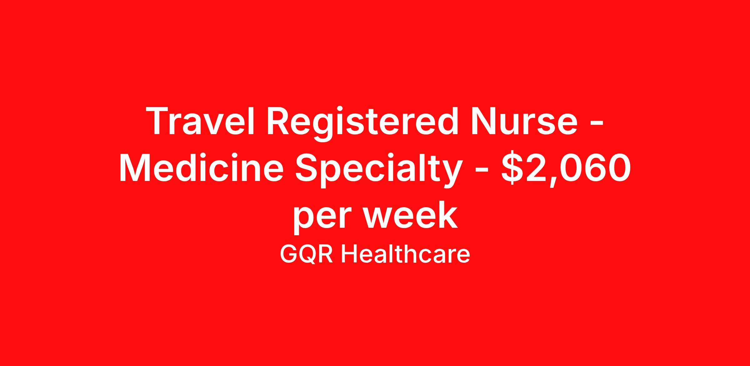 Travel Registered Nurse - Medicine Specialty - $2,060 per week