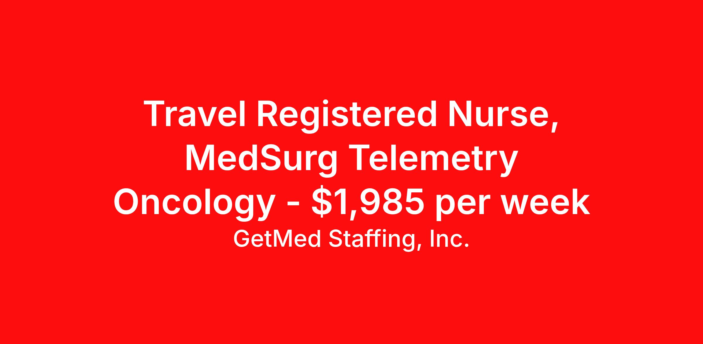 GetMed Staffing, Inc. is seeking a travel nurse RN Telemetry for a travel nursing job in Columbus, Ohio. Job Description & Requirements Specialty: Telemetry Discipline: RN Start Date: 04/20/2026 Duration: 16 weeks 36 hours per week Shift: 12 hours, nights Employment Type: Travel GetMed Staffing is searching for a strong Telemetry RN to assist our traveler-friendly client. A minimum of 1-2 years of experience is required. Traveling with GetMed Staffing offers the unique opportunity to gain diverse experiences, both personally and professionally. Gain experience that matters. GetMed Staffing, Inc. Job ID 36193480. Pay package is based on 12 hour shifts and 36.0 hours per week (subject to confirmation) with tax-free stipend amount to be determined. Posted job title: RN:Telemetry,19:00:00-07:00:00 About GetMed Staffing, Inc. We are a diversity owned company, specializing in healthcare recruiting services. We truly understand how important a healthcare travelers' relationship is with their recruiter, as well as our relationship is with our healthcare facilities. We recognize that the needs of our healthcare travelers can vary, and therefore we provide the personalized touch necessary to ensure a successful travel assignment each and every time. Our healthcare facilities and clients benefit from us putting our healthcare travelers first. GetMed Staffing is excited to be a leader within the industry by focusing on providing healthcare travelers with more choices and possibilities as they plan for their next healthcare travel assignment. Benefits Life insurance Medical benefits Dental benefits Vision benefits 401k retirement plan