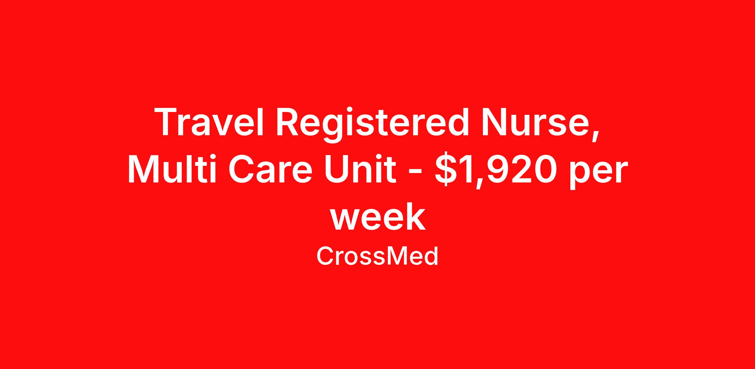 Travel Registered Nurse, Multi Care Unit - $1,920 per week