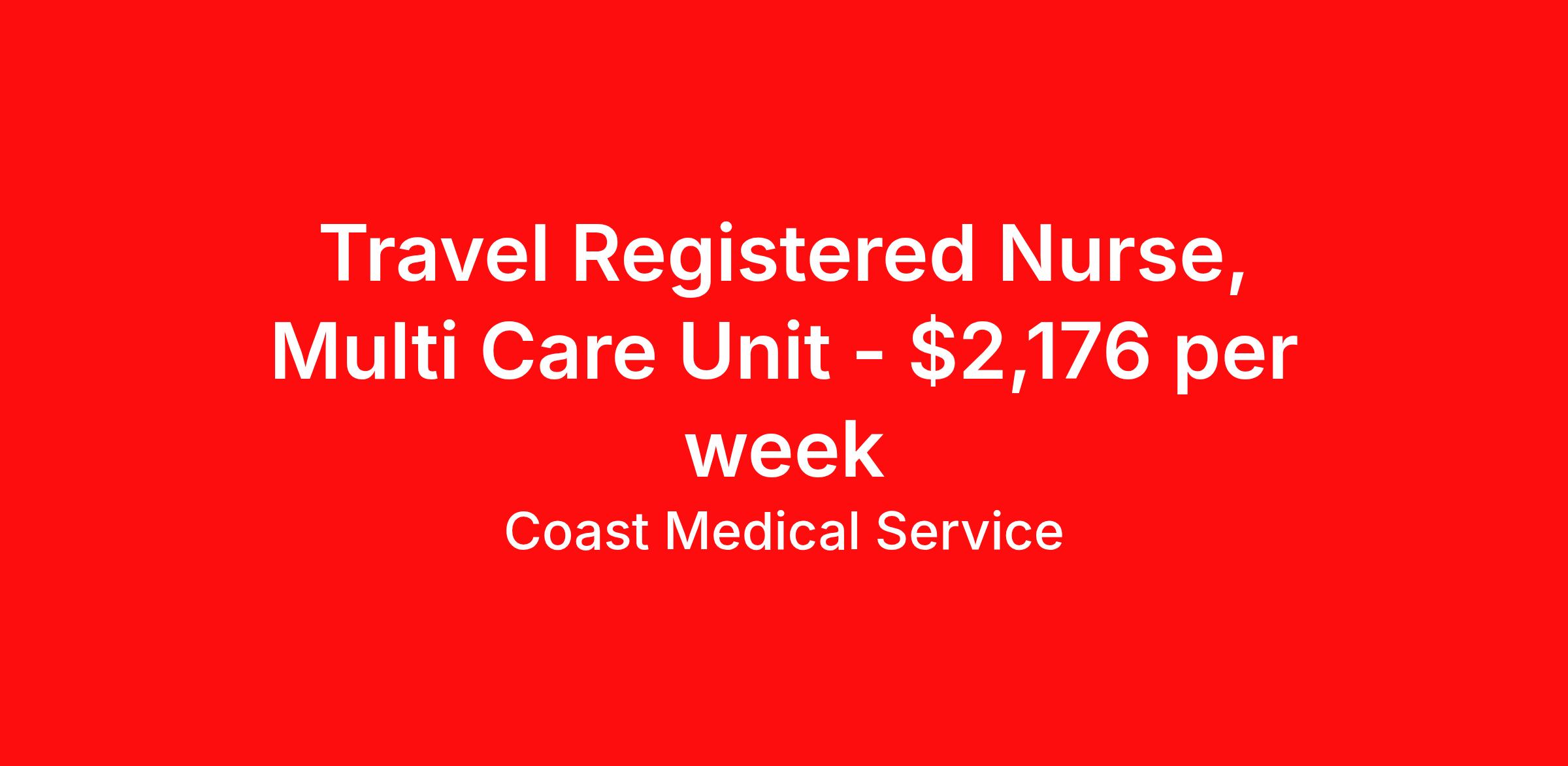 Coast Medical Service is seeking a travel nurse RN ICU - Intensive Care Unit for a travel nursing job in Prescott Valley, Arizona. Job Description & Requirements Specialty: ICU - Intensive Care Unit Discipline: RN Start Date: 04/06/2026 Duration: 13 weeks 36 hours per week Shift: 12 hours, nights Employment Type: Travel Coast Medical Service is a nationwide travel nursing & allied healthcare staffing agency dedicated to providing an elite traveler experience for the experienced or first-time traveler. Coast is featured on Blue Pipes' 2023 Best Travel Agencies and named a 2022 Top Rated Healthcare Staffing Firm & 2023 First Half Top Rated Healthcare Staffing Firm by Great Recruiters. Please note that pay rate may differ for locally based candidates. Please apply here or contact a recruiter directly to learn more about this position & the facility, and/or explore others that may be of interest to you. We look forward to speaking with you! Coast Medical Services Job ID 36149111. Pay package is based on 12 hour shifts and 36.0 hours per week (subject to confirmation) with tax-free stipend amount to be determined. Posted job title: RN:Intensive Care Unit (ICU),19:00:00-07:30:00