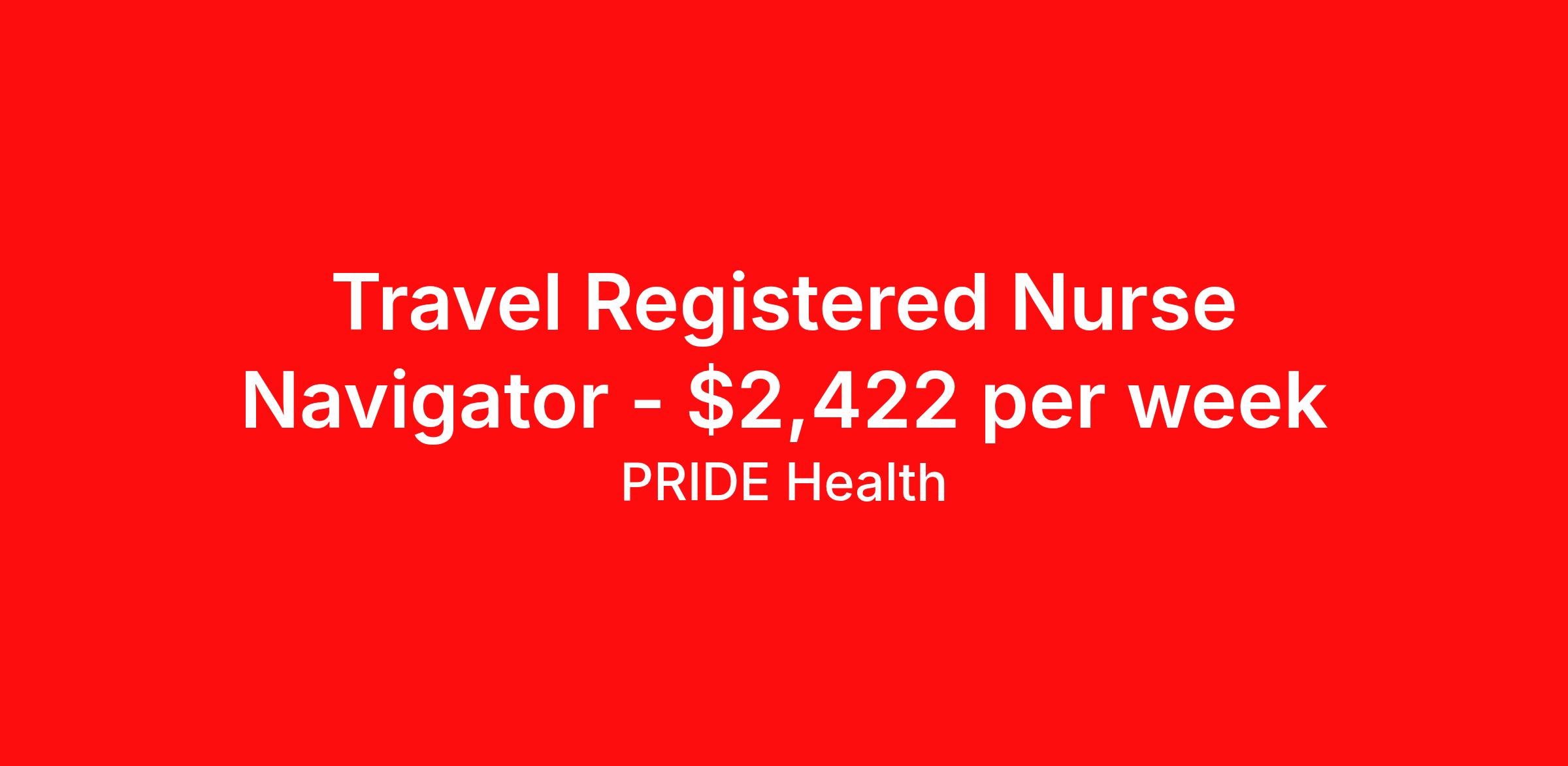 PRIDE Health is seeking a travel nurse RN Nurse Navigator for a travel nursing job in Washington, District of Columbia. Job Description & Requirements Specialty: Nurse Navigator Discipline: RN Start Date: 04/13/2026 Duration: 13 weeks 40 hours per week Shift: 8 hours, days Employment Type: Travel Pride Health Job ID 17832765. Pay package is based on 8 hour shifts and 40.0 hours per week (subject to confirmation) with tax-free stipend amount to be determined. Posted job title: RN:Nursery,09:00:00-17:00:00 About PRIDE Health PRIDE Health is the minority-owned healthcare recruitment division of Pride Global—an integrated human capital solutions and advisory firm. With our robust and abundant travel nursing and allied health employment options across the U.S., PRIDE Health will allow you to help change the way the world lives and heals as it connects you with the industry’s leading healthcare organizations. Pride Global offers eligible employee’s comprehensive healthcare coverage (medical, dental, and vision plans), supplemental coverage (accident insurance, critical illness insurance and hospital indemnity), 401(k)-retirement savings, life & disability insurance, an employee assistance program, legal support, auto, home insurance, pet insurance, and employee discounts with preferred vendors. Benefits Weekly pay Holiday Pay Guaranteed Hours 401k retirement plan Cancelation protection Referral bonus Medical benefits Dental benefits Vision benefits