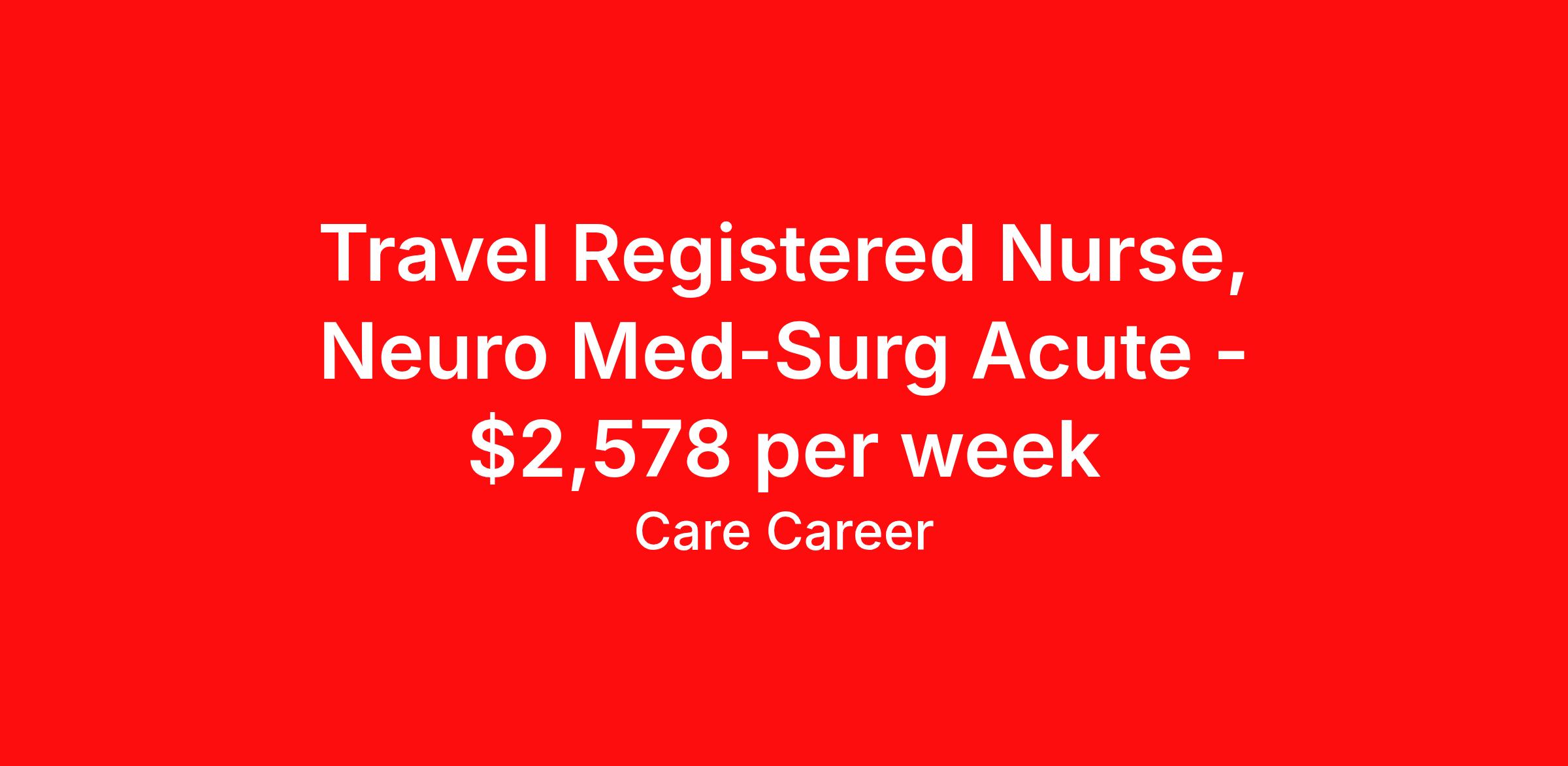 Travel Registered Nurse, Neuro Med-Surg Acute - $2,578 per week