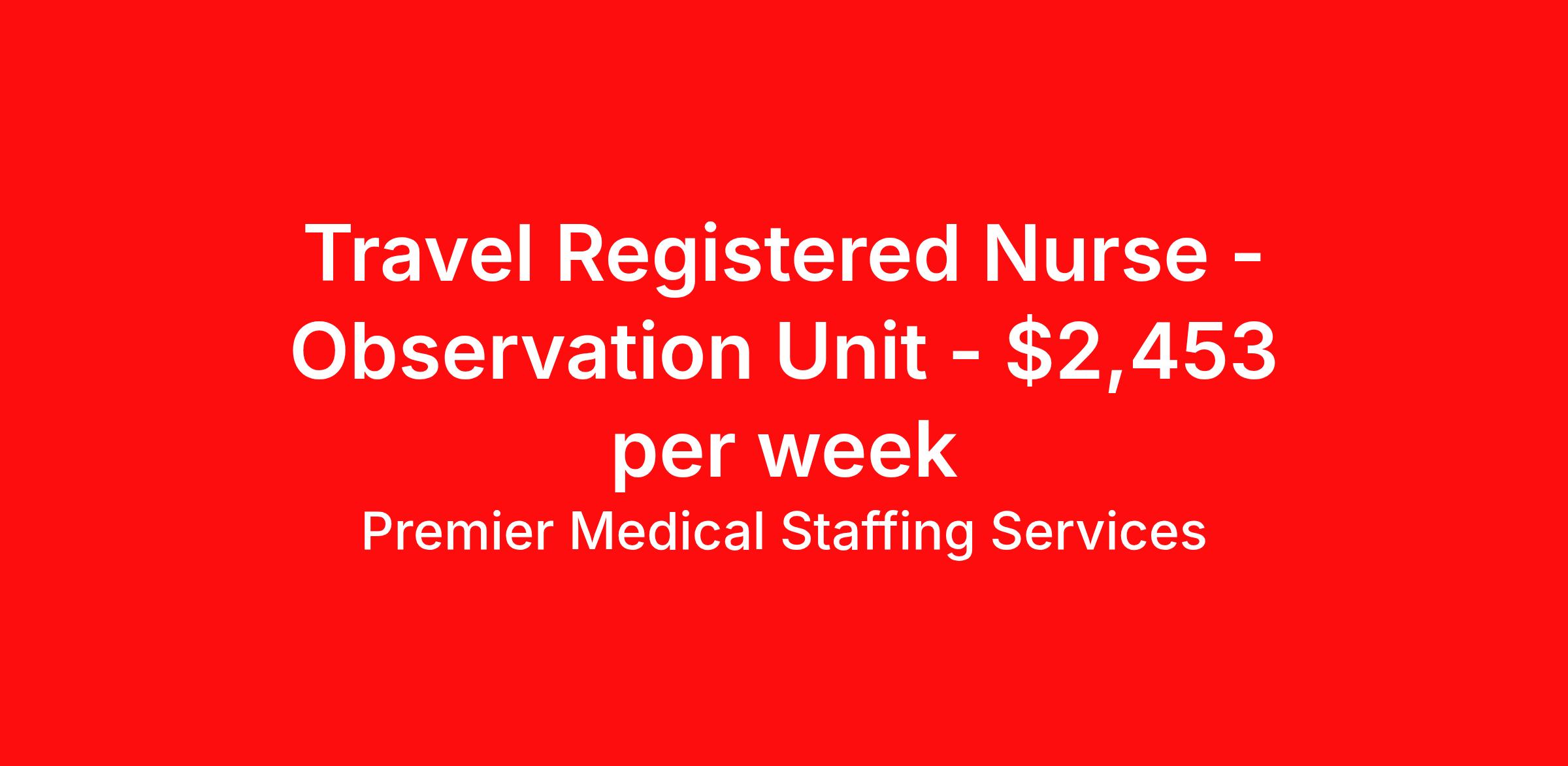 Premier Medical Staffing Services is seeking a travel nurse RN DOU - Direct Observation Unit for a travel nursing job in Urbana, Illinois. Job Description & Requirements Specialty: DOU - Direct Observation Unit Discipline: RN Start Date: 04/06/2026 Duration: 12 weeks 36 hours per week Shift: 12 hours Employment Type: Travel Premier Medical Staffing Job ID 626136. Pay package is based on 12 hour shifts and 36 hours per week (subject to confirmation) with tax-free stipend amount to be determined. Posted job title: RN Med/Surg About Premier Medical Staffing Services Premier Medical Staffing Services, LLC is a nationally expanding healthcare staffing firm for healthcare professionals and companies. We understand our clients’ need for highly qualified, expertly trained medical professionals and are passionate about helping clinicians find employment opportunities that fit their personality and needs. Able to accommodate the ever-changing needs of the healthcare landscape, we offer per-diem, contract and direct hire placements to support the unique needs of each industry sector. Premier Medical Staffing Services is Joint Commission Certified, a Military Spouse Employment Partner and is certified as a Women’s Business Enterprise. We are proudly nurse owned.