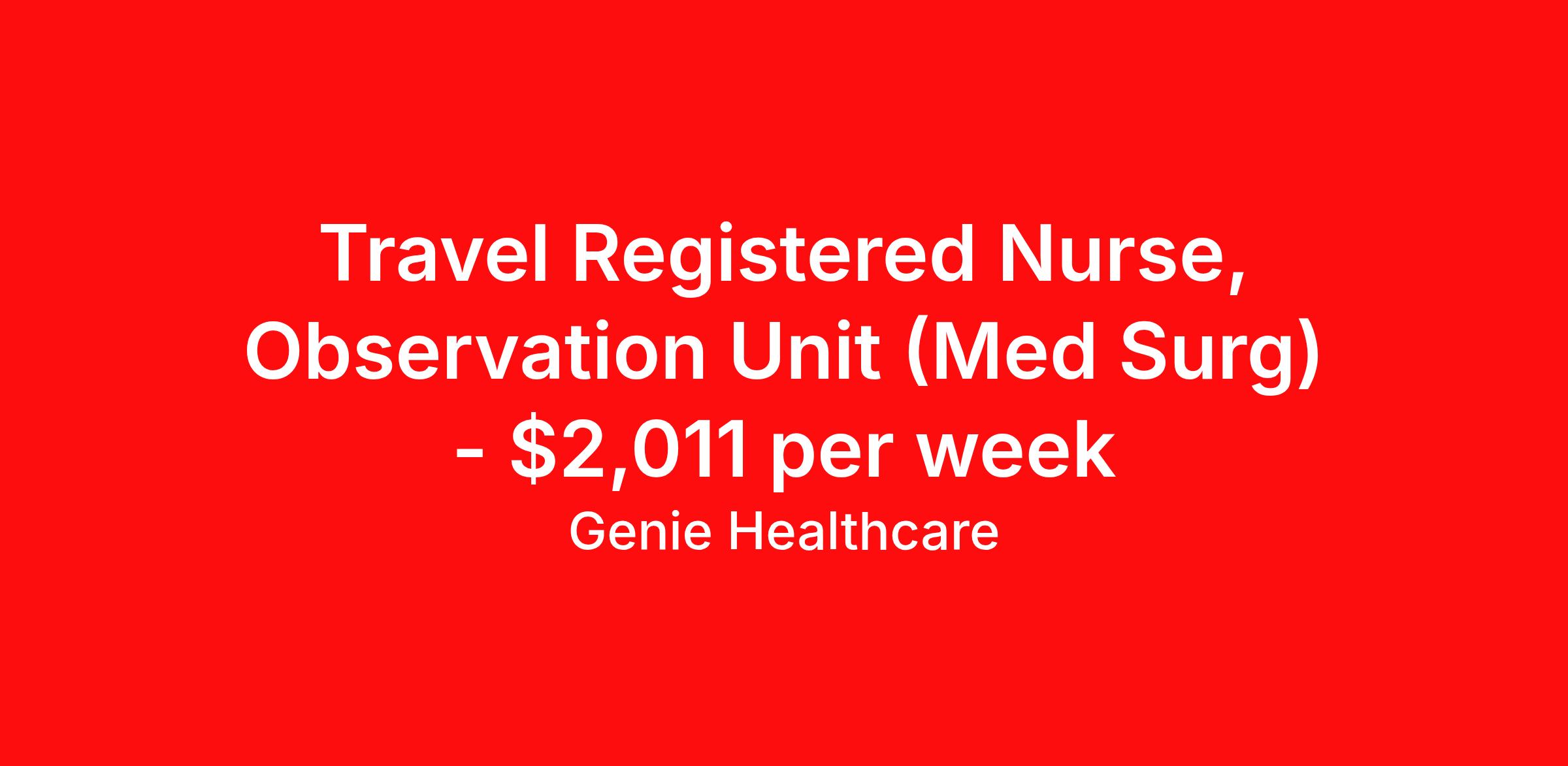Travel Registered Nurse, Observation Unit (Med Surg) - $2,011 per week
