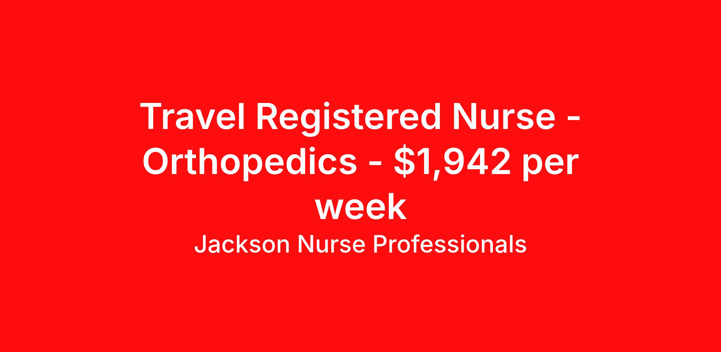 Jackson Nurse Professionals is seeking a travel nurse RN Orthopedics Med Surg for a travel nursing job in Burlington, North Carolina. Job Description & Requirements Specialty: Orthopedics Discipline: RN Start Date: 04/06/2026 Duration: 13 weeks 36 hours per week Shift: 12 hours, days Employment Type: Travel At Jackson Nurse Professionals , we are dedicated to supporting travel nurses and helping you build a fulfilling nursing career. Whether you’re looking for your first or next travel nursing assignment, we specialize in connecting healthcare professionals with leading medical facilities. With a focus on personalized service and a wide range of opportunities, we make it easier than ever for nurses to find the right balance of adventure and professional growth. Qualifications: 2 years of recent experience in area of specialty listed on job Current BLS required (certifications vary by location – job may require ACLS) Valid license and/or certification in state of practice Valid Driver's License Background and drug screen Benefits: Full Medical, Dental and Vision Insurance 401(k) with Employer Match 24/7/365 Support from your Recruiter available by text, phone, or email Referral Bonus Program: Give $200, Get $500 for every referral Same Day Immediate Pay Access Certification & Licensure Reimbursement Apply today to experience the Jackson Nurse Professionals difference! Jackson Nurse Professionals Job ID 2475855. Pay package is based on 12 hour shifts and 36 hours per week (subject to confirmation) with tax-free stipend amount to be determined. About Jackson Nurse Professionals Filling critical needs in patient care, Jackson Nurse Professionals delivers cost-effective travel nurse staffing solutions to over 500 hospitals, outpatient clinics, and home health clients nationwide. Awarded Best of Staffing - Talent and Client 2024, and rated as a Top Workplace 2023 by the Orlando Sentinel, Jackson Nurse Professionals goes the extra mile to provide travel nurses the career they deserve, while providing clients with a large range of highly skilled nurses to fill short, long-term, and temporary assignments. As a member of Jackson Healthcare’s family of award-winning staffing companies, we’re part of a growing community that’s impacting 10 million patients nationwide. Join our mission to improve the delivery of patient care, and the lives of everyone we touch.