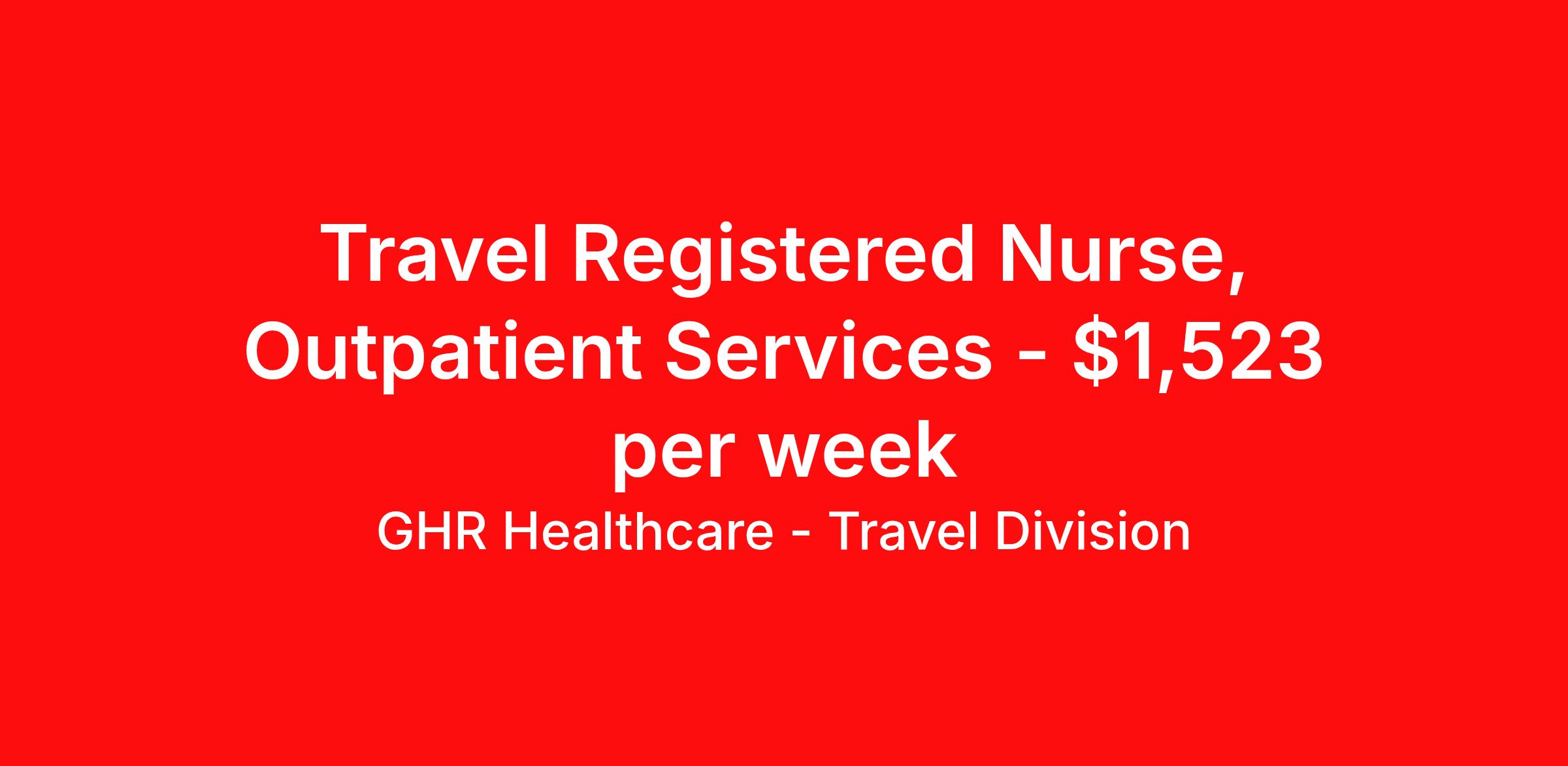 Travel Registered Nurse, Outpatient Services - $1,523 per week