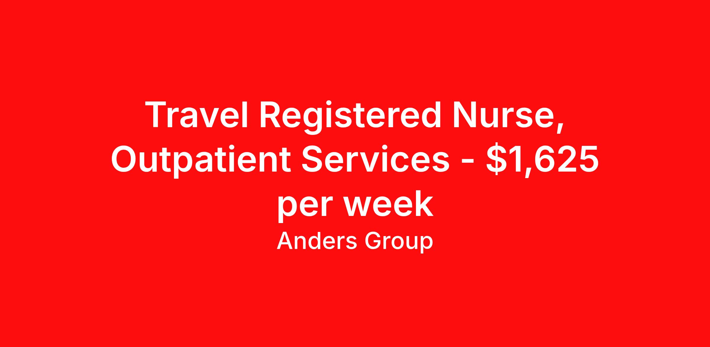 Travel Registered Nurse, Outpatient Services - $1,625 per week