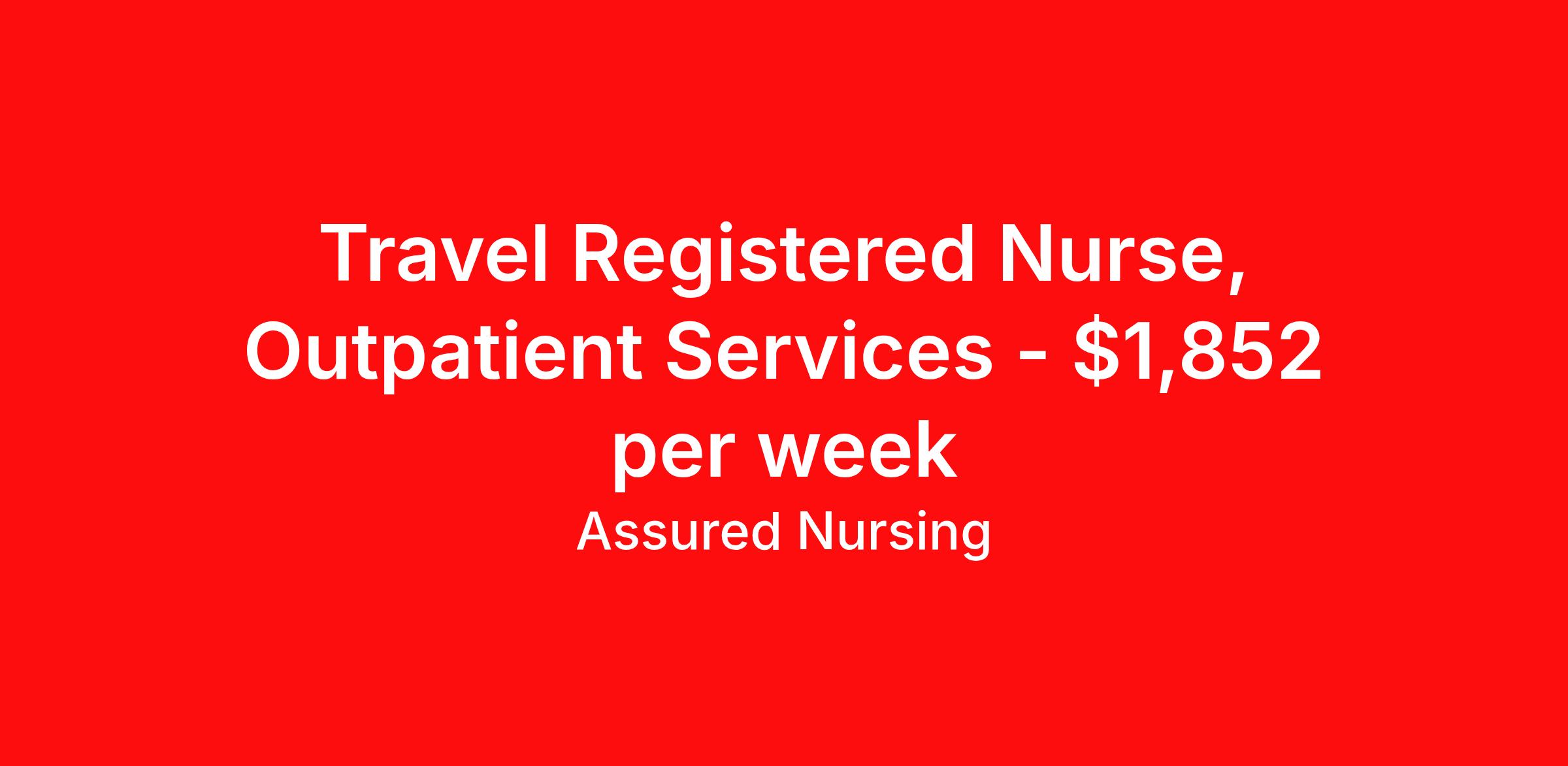 Travel Registered Nurse, Outpatient Services - $1,852 per week