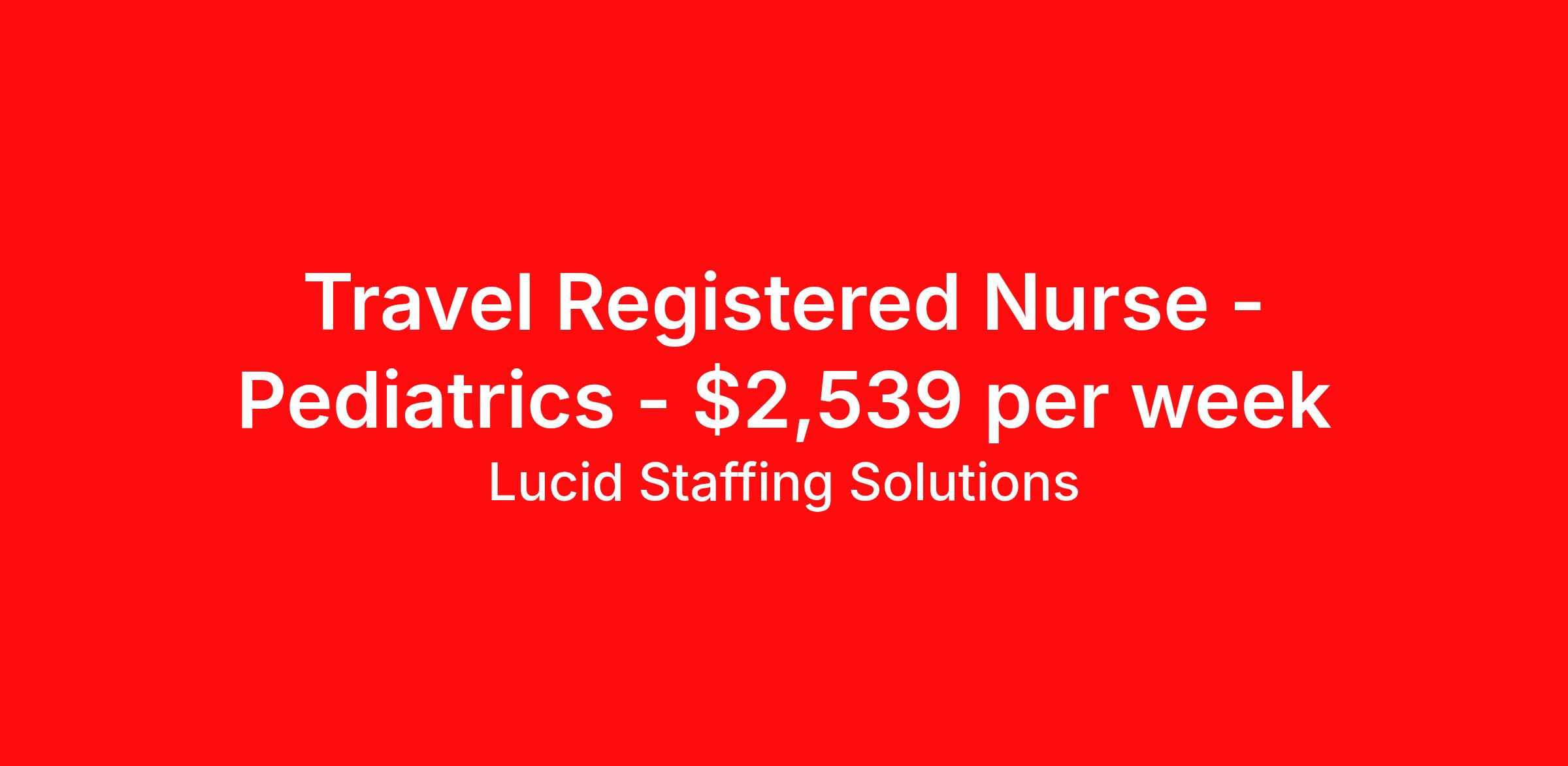 Travel Registered Nurse - Pediatrics - $2,539 per week