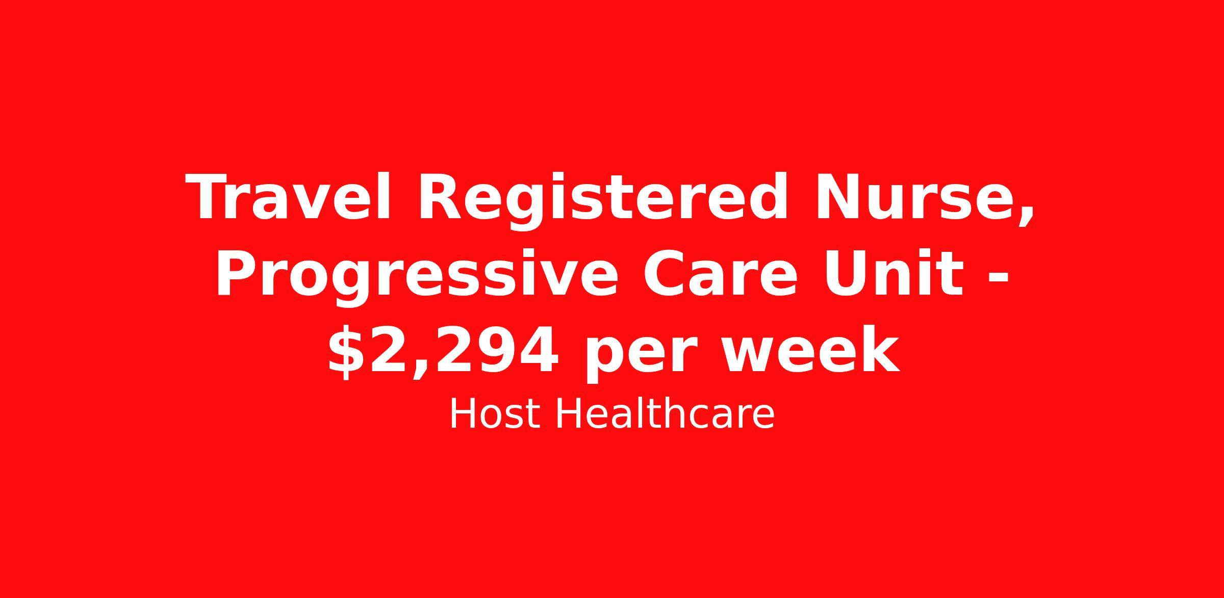 Travel Registered Nurse, Progressive Care Unit - $2,294 per week