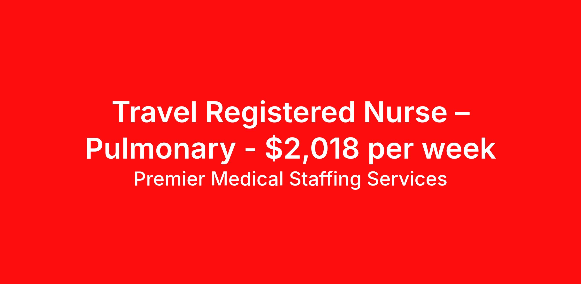 Premier Medical Staffing Services is seeking a travel nurse RN Med Surg for a travel nursing job in Chesterfield, Missouri. Job Description & Requirements Specialty: Med Surg Discipline: RN Start Date: 04/06/2026 Duration: 13 weeks 36 hours per week Shift: 12 hours Employment Type: Travel Premier Medical Staffing Job ID 626564. Pay package is based on 12 hour shifts and 36 hours per week (subject to confirmation) with tax-free stipend amount to be determined. Posted job title: RN Med/Surg About Premier Medical Staffing Services Premier Medical Staffing Services, LLC is a nationally expanding healthcare staffing firm for healthcare professionals and companies. We understand our clients’ need for highly qualified, expertly trained medical professionals and are passionate about helping clinicians find employment opportunities that fit their personality and needs. Able to accommodate the ever-changing needs of the healthcare landscape, we offer per-diem, contract and direct hire placements to support the unique needs of each industry sector. Premier Medical Staffing Services is Joint Commission Certified, a Military Spouse Employment Partner and is certified as a Women’s Business Enterprise. We are proudly nurse owned.