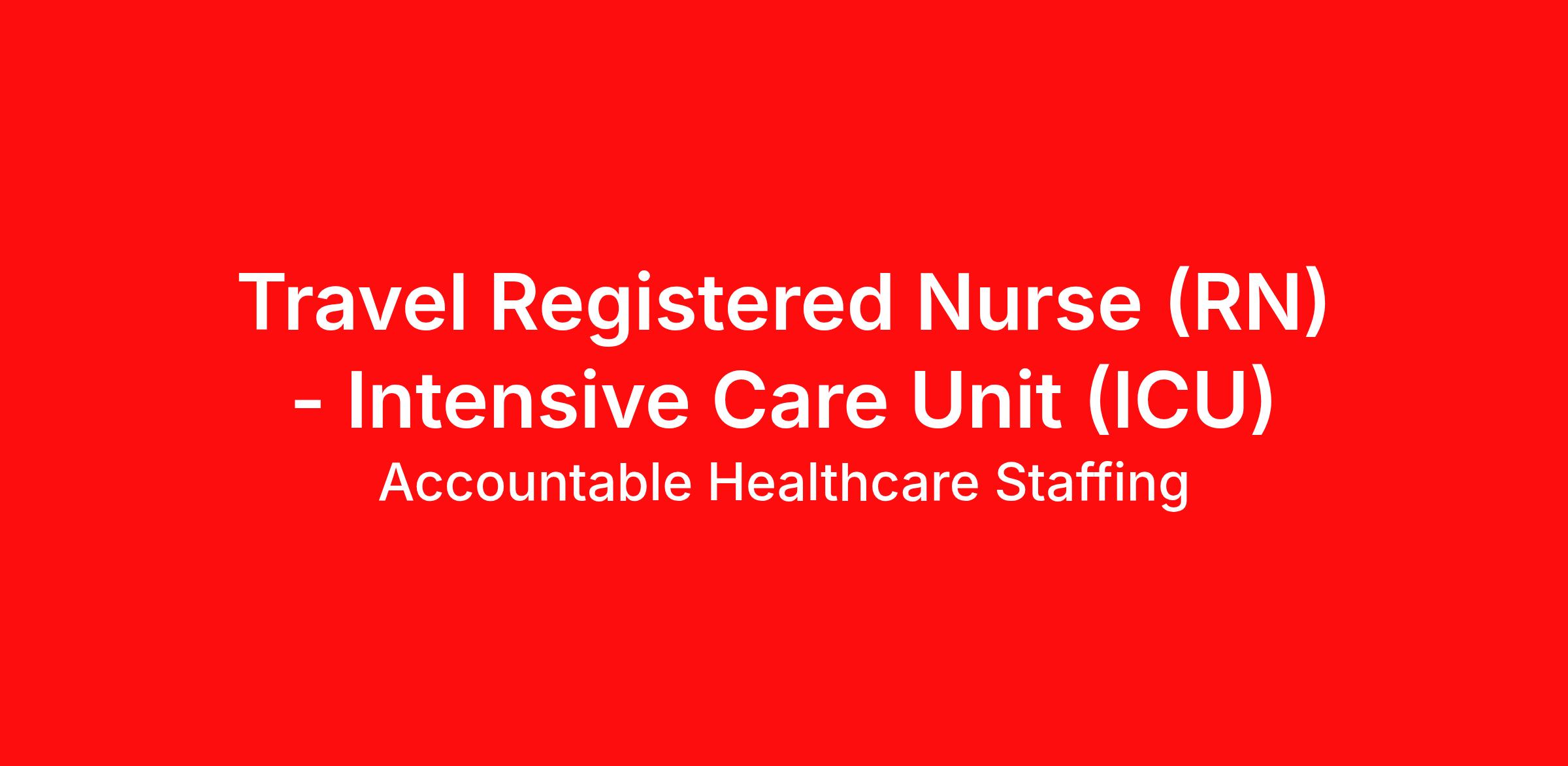 $2,041.20 - $2,268.00 Weekly *Rate is comprised of taxable hourly rate, specifically including if applicable, nontaxable (housing and M&IE) stipends converted to an hourly rate based on a 36-hour work week, and may be eligible for overtime FA - 1875193 - A Registered Nurse (RN) needed in an Intensive Care Unit/Critical Care Unit (ICU/CCU) setting. Job Type: Travel Contract. Shift: Day/Night Rotation, 36hr Week (3x12). Location: Oak Bluffs, MA. Requirements: Must have 2yrs ICU/CCU experience during the past 3yrs. Updated resume, Basic Life Support (BLS - AHA or Red Cross), Advanced Cardiac Life Support (ACLS - AHA or Red Cross), current drivers license (DL), and an active Massachusetts RN license. Benefits: Medical, Dental, Voluntary Vision, Flexible Spending, Pet Insurance, Short Term Disability Insurance, Matching 401k, and more. If you would like to combine your love of traveling with your nursing career, Accountable's Travel Nurse contracts are the way to go. LIVE Life 13 weeks at a time We can help you achieve your career goals by connecting you to our diverse healthcare clients close to home or in desirable locations throughout the United States. Choose to serve patients in major medical centers, community-based hospitals, outpatient clinics, sub-acute care & rehab hospitals, correctional and long-term care facilities, and more. Our team members will match you with the facility that corresponds to your personal and professional goals. Accountable Benefits include Medical, Dental, Voluntary Vision, Life and ADD, Critical Illness, Hospital Indemnity, Flexible Spending, Legal Services, Voluntary Accident Insurance, Pet Insurance, Short Term Disability Insurance and Matching 401K EEO/Minority/Female/Individuals with Disabilities/Sexual Orientation/Gender Identity/Veteran Yep, we're Accountable! Quick Apply in seconds