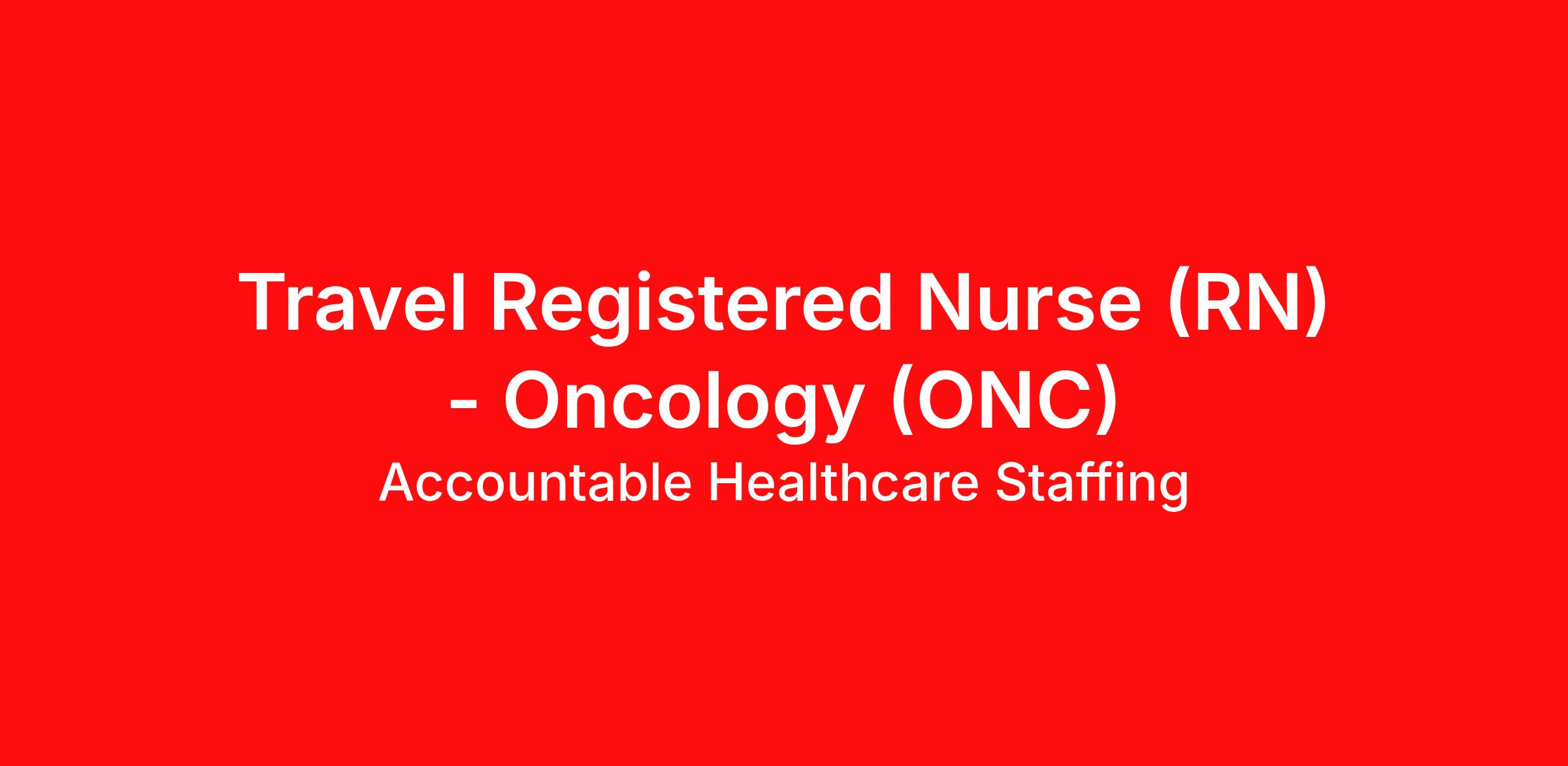 FA - 1875365 - A Registered Nurse (RN) needed in a Medical/Surgical Oncology (M/S Onc) setting. Job Type: Local or Travel Contract. Shift: Nights, 36hr Week (3x12). Location: Lynchburg, VA. Requirements: Must have 2yrs M/S Onc experience during the past 3yrs. Updated resume, Basic Life Support (BLS - AHA or Red Cross), current drivers license (DL), and an active Virginia or Compact RN license. Benefits: Medical, Dental, Voluntary Vision, Flexible Spending, Pet Insurance, Short Term Disability Insurance, Matching 401k, and more. If you would like to combine your love of traveling with your nursing career, Accountable's Travel Nurse contracts are the way to go. LIVE Life 13 weeks at a time We can help you achieve your career goals by connecting you to our diverse healthcare clients close to home or in desirable locations throughout the United States. Choose to serve patients in major medical centers, community-based hospitals, outpatient clinics, sub-acute care & rehab hospitals, correctional and long-term care facilities, and more. Our team members will match you with the facility that corresponds to your personal and professional goals. Accountable Benefits include Medical, Dental, Voluntary Vision, Life and ADD, Critical Illness, Hospital Indemnity, Flexible Spending, Legal Services, Voluntary Accident Insurance, Pet Insurance, Short Term Disability Insurance and Matching 401K EEO/Minority/Female/Individuals with Disabilities/Sexual Orientation/Gender Identity/Veteran Yep, we're Accountable! Quick Apply in seconds