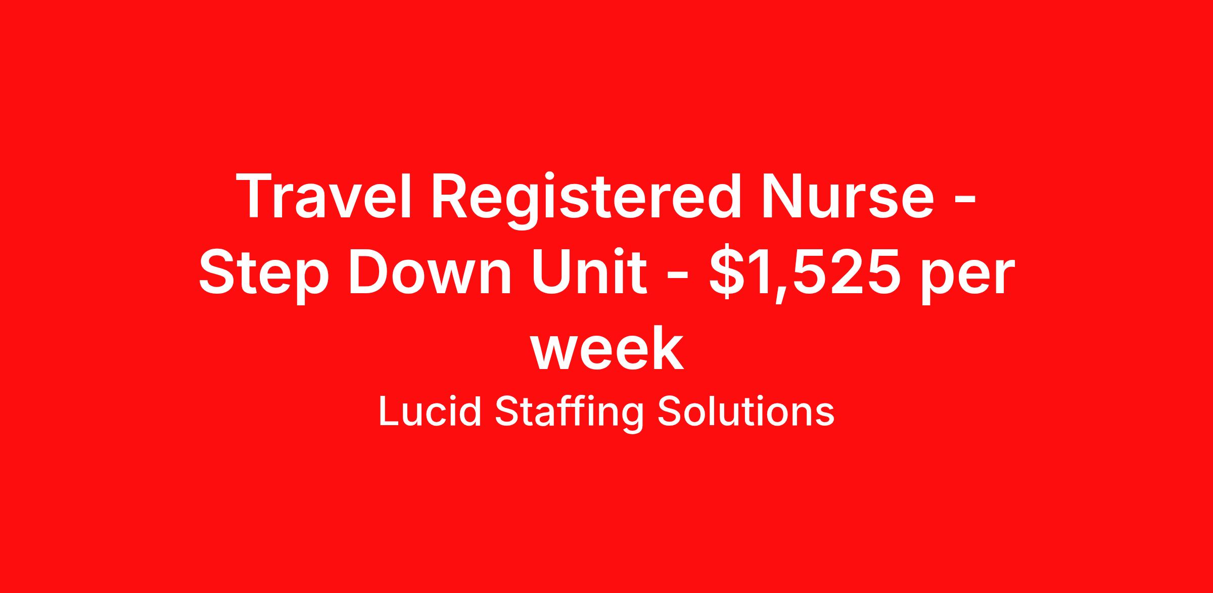 Lucid Staffing Solutions is seeking a travel nurse RN PCU - Progressive Care Unit for a travel nursing job in Cleveland, Ohio. Job Description & Requirements Specialty: PCU - Progressive Care Unit Discipline: RN Duration: 13 weeks 36 hours per week Shift: 12 hours, nights Employment Type: Travel Job Description Position: Travel Registered Nurse (RN) with experience in PCU/IMC/Stepdown Location: Cleveland, Ohio Shift: hr Night Weekly Gross: $1524.75 Lucid Staffing Solutions was created by former healthcare workers who lived the short staffing, the chaotic workflows, and the nonstop pressure that comes with patient care. We built an agency powered by real clinical experience, kept simple and supportive, so you never have to guess whether the people guiding you actually know what they’re talking about. Minimum Requirements: Active license as a Registered Nurse (RN) Licensed in Ohio (If applicable) or compact eligible Two years of recent PCU/IMC/Stepdown experience Active BLS Why Lucid Works for Travelers Paid Weekly: Stipends pushed to GSA limits whenever possible $500 Travel Reimbursement: Paid at the start of each assignment Clinician-Led Team: Recruiters and Account Managers with real clinical experience In-House Compliance: fast updates, real communication, and none of the delays that come with outsourced vendors. Health Coverage Options: Multiple medical plans plus dental, vision, and workers compensation 401(k) Match: 4 percent match after 6 months License & Certification Reimbursement: We help cover the cost of staying compliant Liability Insurance: Included automatically Referral Bonuses: $500 per referral, $750 after five referrals Ready to start your journey? Apply today to connect with a Clinician-Recruiter! Lucid Staffing Solutions Job ID 36669. Pay package is based on 12 hour shifts and 36 hours per week (subject to confirmation) with tax-free stipend amount to be determined. Posted job title: PCU/IMC/Stepdown About Lucid Staffing Solutions Clinician Owned & Operated At Lucid Staffing Solutions, we do things differently—because we’ve been in your shoes. Founded by actual healthcare professionals, Lucid was built to fix the issues we experienced as travelers. We know what makes a great assignment: competitive pay, seamless onboarding, honest recruiters, and most importantly—working with a team that truly sees and supports you. Our entire team is made up of former clinicians who understand the demands of the job and what travelers truly need to succeed. We offer some of the highest paying allied health and nursing contracts across the country, along with some amazing benefits & perks. Whether you're chasing freedom, flexible schedules, bigger paychecks, or your next adventure, Lucid helps you get there—with real support, real respect , and real healthcare experts. Benefits Dental benefits Medical benefits Vision benefits