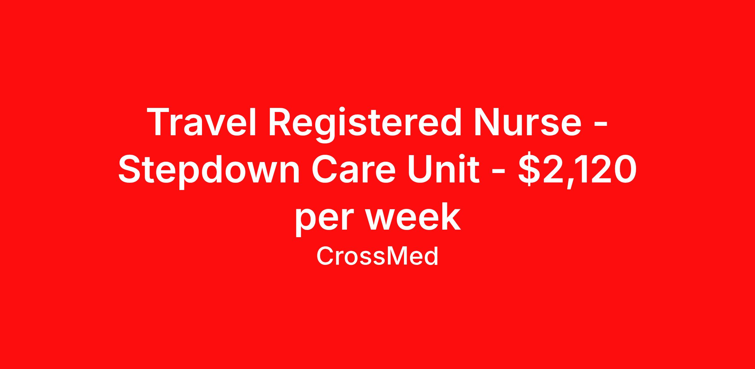 Travel Registered Nurse - Stepdown Care Unit - $2,120 per week