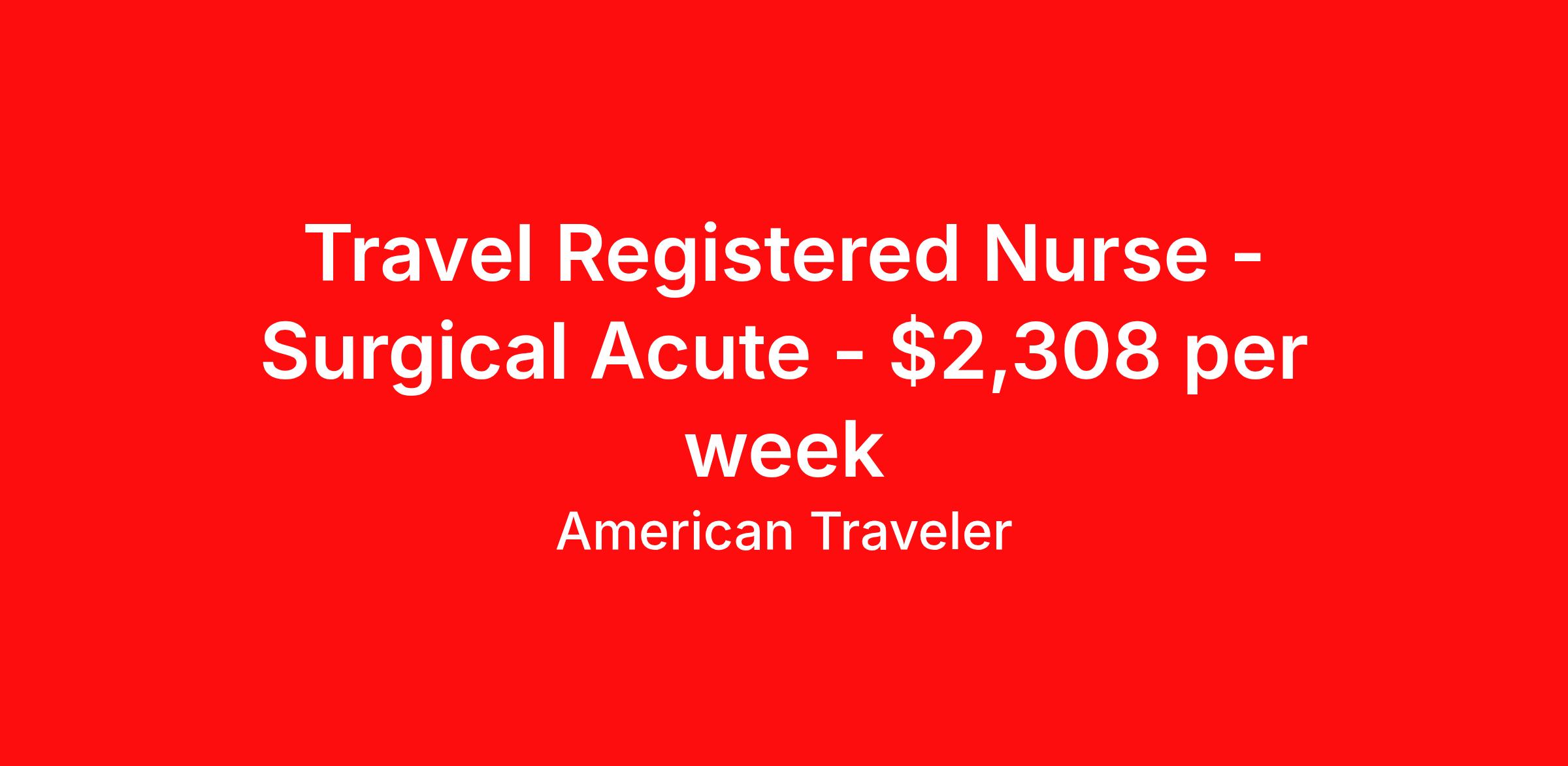 American Traveler is seeking a travel nurse RN Med Surg for a travel nursing job in Peoria, Illinois. Job Description & Requirements Specialty: Med Surg Discipline: RN Start Date: 03/30/2026 Duration: 13 weeks 36 hours per week Shift: 12 hours, nights Employment Type: Travel Assignment Overview Shift: Nights, 3x12hrs Hours: 36 hrs/wk Start Date: Mar 30, 2026 Length: 13 weeks Openings: 1 Description American Traveler is seeking an experienced RN for a 13-week Surgical Acute (Med/Surg) travel contract requiring an active IL RN license and post-op care experience. Details 63-bed Surgical Acute unit (49 private rooms, 9 observation beds) in an acute care hospital setting Patient population includes post-op surgical, trauma, overflow medical cases requiring dressing changes, wound care, IV therapy, pain management, drain management, NG tubes, central lines, and TPN Nurse-to-patient ratios: 4–5 patients/RN on days; 5–6 patients/RN on nights PCTs are available on the unit — days: 7–10 patients/PCT; nights: 10–15 patients/PCT — assisting with vitals, accuchecks, ADLs, turning, and ambulation Some patients are on telemetry monitored via Philips monitors with dedicated central station monitor techs; bedside RNs are not required to read strips Heparin drips are used; RNs are not required to titrate drips CPAP and high-flow oxygen used on unit; RTs manage nebulizers, RNs manage inhalers and can place patients on CPAP — no ventilators on this unit Night shift: 1930–0730 (12-hour shifts) Every other weekend required (Saturday and Sunday) No call or standby requirement Travelers are first to float and will float to units with the same level of experience Block scheduling will be considered but must be approved at the time of contract; travelers do not self-schedule EMR: Epic Requirements Active IL RN license required; pending licenses will not be accepted Current BLS certification (AHA) required; must be active — pending certifications not accepted Minimum 1 year of RN experience required Post-op patient care experience required Strong critical thinking skills, willingness to ask for help, good bedside manner, and team-oriented approach 2 professional references required: one supervisor from within the last 12 months and one peer or supervisor from within the last 3 years, including dates of employment and eligibility for rehire Must be able to pass a drug screen; facility is a drug-free campus Additional Information Orientation consists of 2 preceptor shifts plus one 12-hour shift covering Epic and professional orientation with the unit educator Two pre-assigned charge RNs per shift who do not take a patient assignment; house supervisor available 24/7 Holiday rotation required every other holiday Any color scrubs are acceptable Local candidates are welcome to apply; candidates with a permanent address within 50 miles of the facility are subject to a local pay rate COVID vaccination is not required for this position American Traveler Job ID P-684863. Pay package is based on 12 hour shifts and 36 hours per week (subject to confirmation) with tax-free stipend amount to be determined. Posted job title: Travel RN - Med/Surg About American Traveler With over 25 years of experience, American Traveler has established a reputation for outstanding customer service. Our team ensures a smooth, worry-free experience for those starting on or expanding their travel nursing and allied careers. With thousands of travel nursing and allied jobs nationwide, our attentive and approachable recruiters find positions that align perfectly with your career aspirations and personal requirements. American Traveler offers exceptional benefits, including premium medical, dental, vision and life insurance beginning day one of your assignment, generous 401(k) match, substantial housing stipends, and more. Additionally, with 24/7 support and access to our in-house clinicians, you are assured confidence and comfort throughout your assignment. With our team behind you, you can relax and enjoy a rewarding travel career.