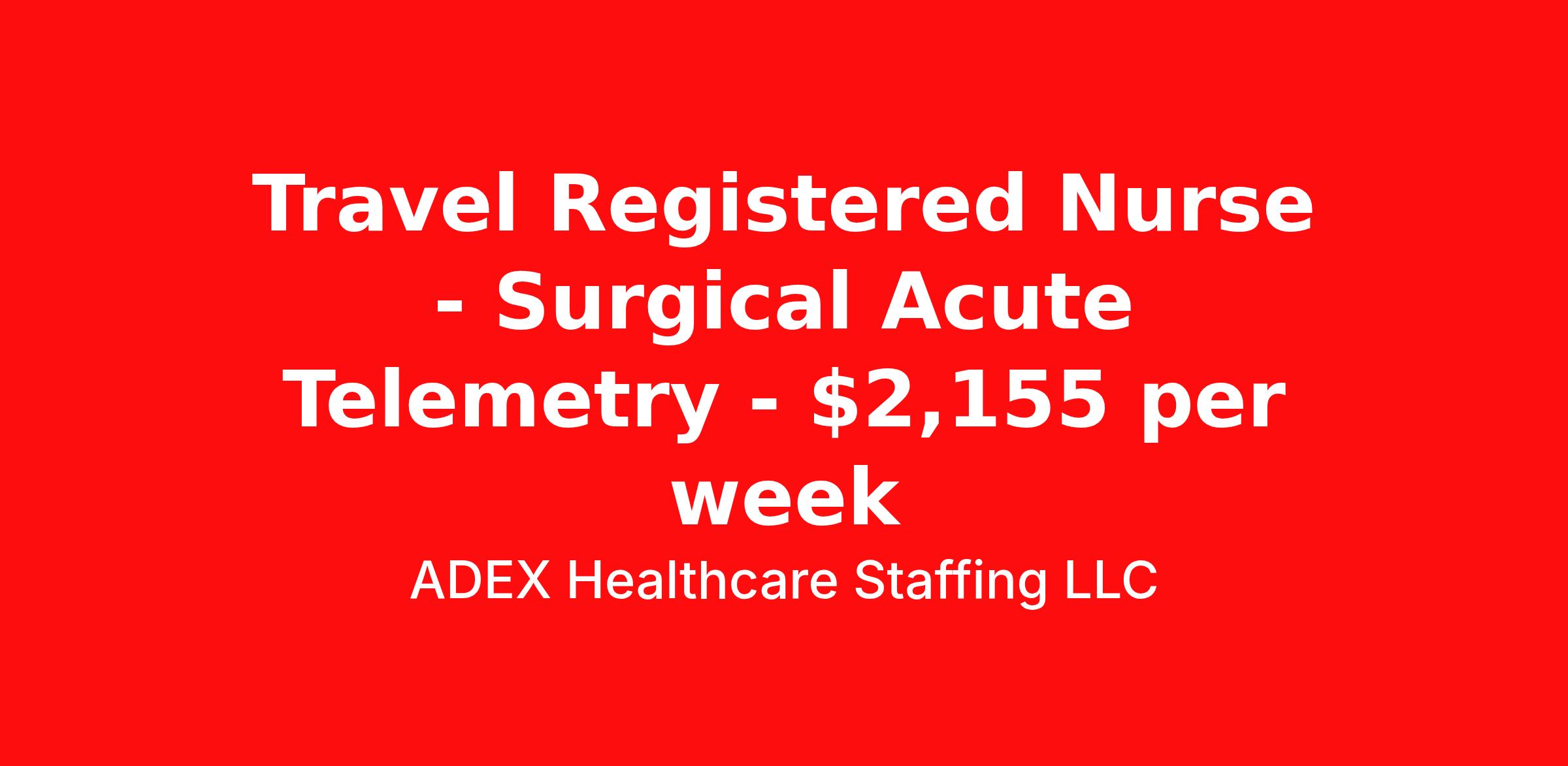ADEX Healthcare Staffing LLC is seeking a travel nurse RN Telemetry for a travel nursing job in Phoenix, Arizona. Job Description & Requirements Specialty: Telemetry Discipline: RN Start Date: 03/30/2026 Duration: 13 weeks 36 hours per week Shift: 12 hours, nights Employment Type: Travel RN Position Job Notes: Travel or Local Registered Nurse needed for ASAP start. A minimum of 2 years of recent hospital bedside experience is required. Candidates must be able to start within 5 weeks. Opportunity for extension upon successful completion of the initial assignment. $750 referral bonus available. Opportunity: RN - Acute Care Job Details: • Work 12-hour night shifts on T8 - Trauma, Ortho, Surgical unit • Patient ratios of 1:4-5 in a 30-bed unit • Must have minimum 2 years telemetry experience and Level 1 Trauma experience required • Required certifications: BLS, ACLS • Weekend requirement of 3 shifts in a 4-week period (4 total weekend shifts per 4 weeks) • Holiday shifts integrated into permanent staff rotation • Must pass dysrhythmia examination prior to acceptance (2 attempts allowed) • Pass/fail SIMs Lab required on Day 1 of orientation covering Foley catheter insertion and central line dressing changes • Must maintain sterile field during procedures • Floor-specific orientation of 2 shifts • Floating to Observation, VMU, T6, T5, 6N, 5N MedSurg, and all medical-surgical and telemetry units • Work with Cerner EMR system and Phillips telemetry • Care for patients including transplants post-op day 1, Whipple procedures, spine surgeries, orthopedic joint procedures, and trauma patients • Must have own vehicle for travel • Dress code requirements: navy scrubs, natural hair color, no facial piercings • Men must be clean-shaven for fit testing • Hospital can cancel up to 4 shifts per 13-week assignment Facility: This healthcare facility is a Level 1 trauma center providing comprehensive acute care services with specialized focus on transplant procedures, complex surgical cases, and trauma care. The facility operates with advanced medical technology including 24/7 respiratory therapy and pharmacy services, SWAT RN IV team support, and modern equipment for patient monitoring and care. The organization maintains high standards for nursing competency and provides a supportive environment with charge nurses who do not take patient assignments and adequate nursing aide coverage. Location: Phoenix, AZ Phoenix offers year-round sunshine and outdoor recreation opportunities in the beautiful Sonoran Desert landscape. The city provides a vibrant healthcare community with excellent professional development opportunities and a lower cost of living compared to many major metropolitan areas. Adex Job ID 1062676. Pay package is based on 12 hour shifts and 36 hours per week (subject to confirmation) with tax-free stipend amount to be determined. About ADEX Healthcare Staffing LLC ADEX has been placing healthcare professionals across the US since 2004. Originally founded in Atlanta, GA, the company's headquarters are now located in Tampa, FL. JCAHO certified since 2009. Benefits Referral bonus