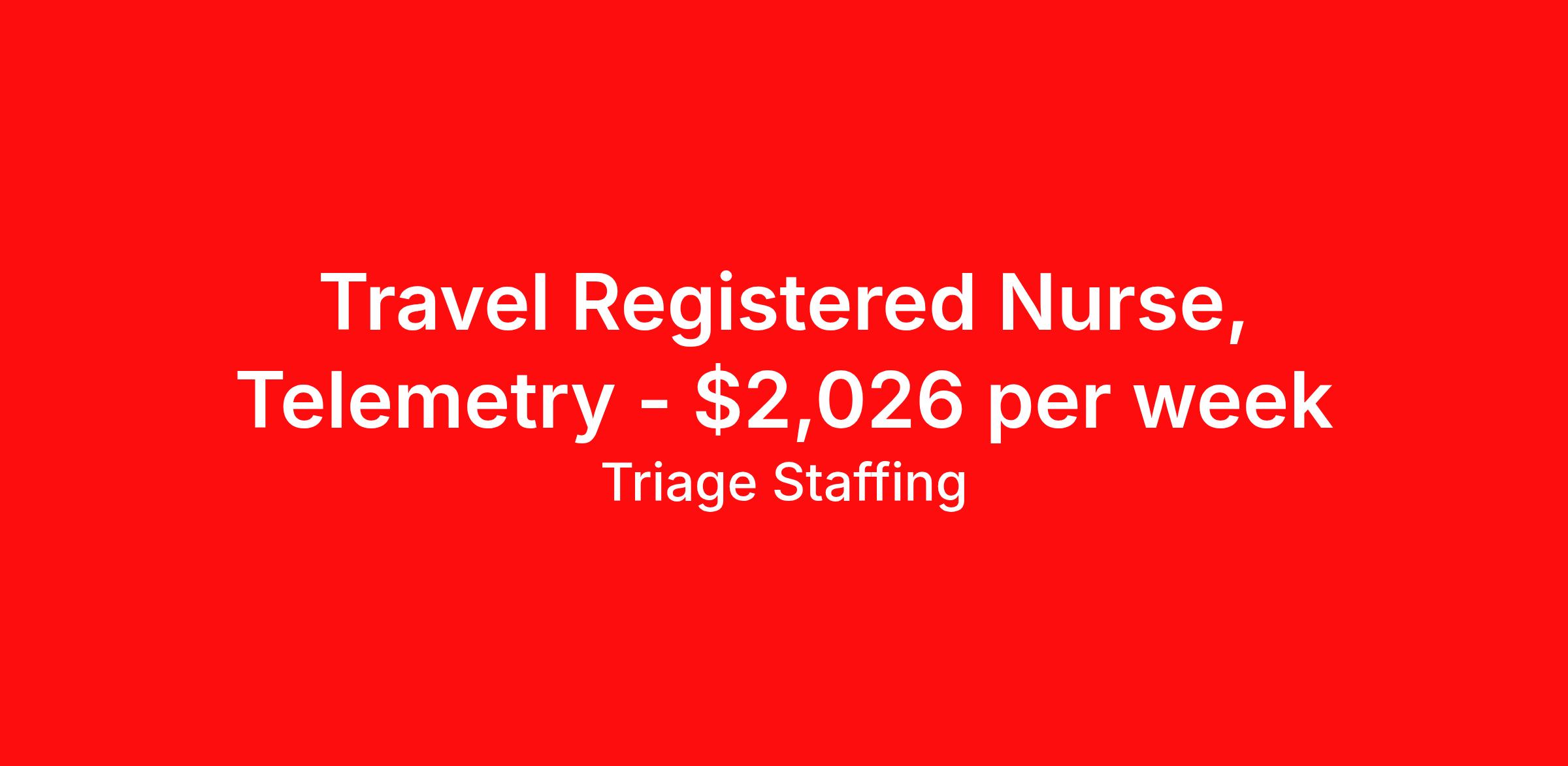 Triage Staffing is seeking a travel nurse RN Telemetry for a travel nursing job in Alexandria, Louisiana. Job Description & Requirements Specialty: Telemetry Discipline: RN Start Date: 03/23/2026 Duration: 13 weeks 36 hours per week Shift: 12 hours, nights Employment Type: Travel Travel Nursing: Telemetry Alexandria Location: Alexandria Start Date: 3/23/2026 Shift Details: 12H Nights 36 hours per week Length: 13 WEEKS Apply for specific facility details.Telemetry RN Triage Staffing Job ID L363JAUV. Posted job title: Nursing: Telemetry About Triage Staffing At Triage, we prefer to be real . Real about expectations—both ours and yours. Real about how a decision you make today could affect your tomorrows. Real about how compensation actually works. Real about how great—or grating—your next supervisor may be. Being real allows everyone at Triage to be ready . Ready to serve you with real honesty. So if that gig near the ocean is really no day at the beach, or that third shift comes with a second-class rate, we tell you. So you can be ready, too. We staff all five major divisions of acute care—nursing, lab, radiology, cardiopulmonary and rehab therapy, offering: - Competitive, custom pay packages - One point of contact for both travelers and facilities (per division) - A reliable recruiter who's got your back throughout your entire assignment - In-house compliance and accounting specialists - A clinical liaison team available 24/7 to offer medical and professional support and career development - A mentoring program that is run and managed by actual clinicians—yeah, you read that right - And more (because of course there’s more) Are we the biggest? No. Are we the best? That’s rather subjective, but we’re trying to be. Will we work like hell to get you as close to your idea of heaven as possible? Yes. Yes, we will. Benefits: Day One comprehensive, nationwide insurance plans for health, vision and dental and life—including a HSA option Day One 401(k) program with employer-matching contributions once eligible Facility cancelling protection—your time is money on and off-the-clock Guaranteed hours Weekly paychecks via direct deposit Earned vacation bonuses for time worked Paid holidays Employee assistance program (EAP)—your mental health is important, too Continuing education, certification and licensing reimbursement Workers comp—because accidents happen Top-rated professional liability insurance Company provided housing options Referral bonus—$750 in your pocket after they’ve completed a 13-week assignment
