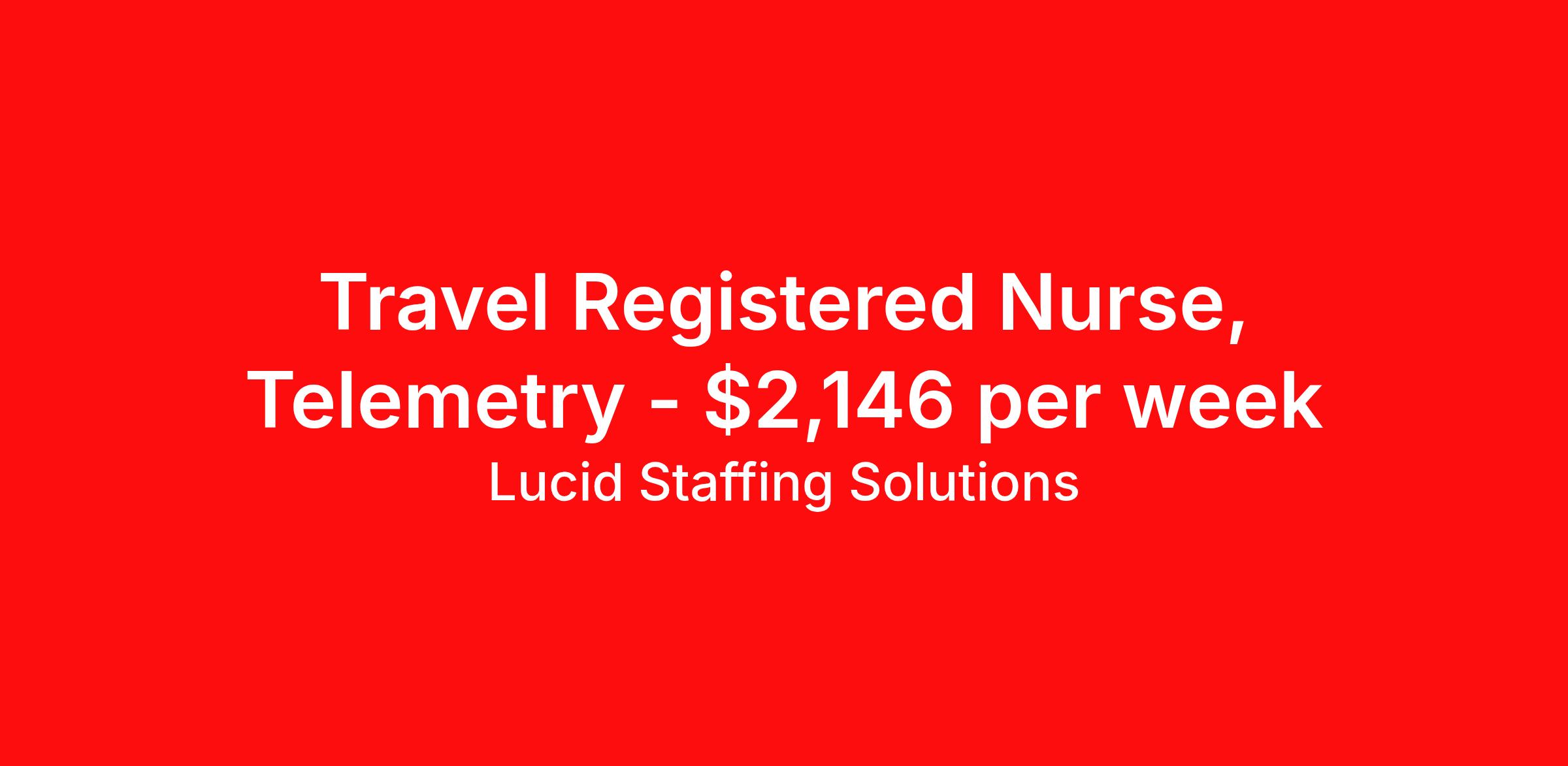 Lucid Staffing Solutions is seeking a travel nurse RN Med Surg / Telemetry for a travel nursing job in Alexandria, Louisiana. Job Description & Requirements Specialty: Med Surg / Telemetry Discipline: RN Duration: 13 weeks 36 hours per week Shift: 12 hours, nights Employment Type: Travel Job Description Position: Travel Registered Nurse (RN) with experience in MS-Tele Location: Alexandria, Louisiana Shift: 12hr Night Weekly Gross: $2146.32 Lucid Staffing Solutions was created by former healthcare workers who lived the short staffing, the chaotic workflows, and the nonstop pressure that comes with patient care. We built an agency powered by real clinical experience, kept simple and supportive, so you never have to guess whether the people guiding you actually know what they’re talking about. Minimum Requirements: Active license as a Registered Nurse (RN) Licensed in Louisiana (If applicable) or compact eligible Two years of recent MS-Tele experience Active BLS Why Lucid Works for Travelers Paid Weekly: Stipends pushed to GSA limits whenever possible $500 Travel Reimbursement: Paid at the start of each assignment Clinician-Led Team: Recruiters and Account Managers with real clinical experience In-House Compliance: fast updates, real communication, and none of the delays that come with outsourced vendors. Health Coverage Options: Multiple medical plans plus dental, vision, and workers compensation 401(k) Match: 4 percent match after 6 months License & Certification Reimbursement: We help cover the cost of staying compliant Liability Insurance: Included automatically Referral Bonuses: $500 per referral, $750 after five referrals Ready to start your journey? Apply today to connect with a Clinician-Recruiter! Lucid Staffing Solutions Job ID 37190. Pay package is based on 12 hour shifts and 36 hours per week (subject to confirmation) with tax-free stipend amount to be determined. Posted job title: MS-Tele About Lucid Staffing Solutions Clinician Owned & Operated At Lucid Staffing Solutions, we do things differently—because we’ve been in your shoes. Founded by actual healthcare professionals, Lucid was built to fix the issues we experienced as travelers. We know what makes a great assignment: competitive pay, seamless onboarding, honest recruiters, and most importantly—working with a team that truly sees and supports you. Our entire team is made up of former clinicians who understand the demands of the job and what travelers truly need to succeed. We offer some of the highest paying allied health and nursing contracts across the country, along with some amazing benefits & perks. Whether you're chasing freedom, flexible schedules, bigger paychecks, or your next adventure, Lucid helps you get there—with real support, real respect , and real healthcare experts. Benefits Dental benefits Medical benefits Vision benefits