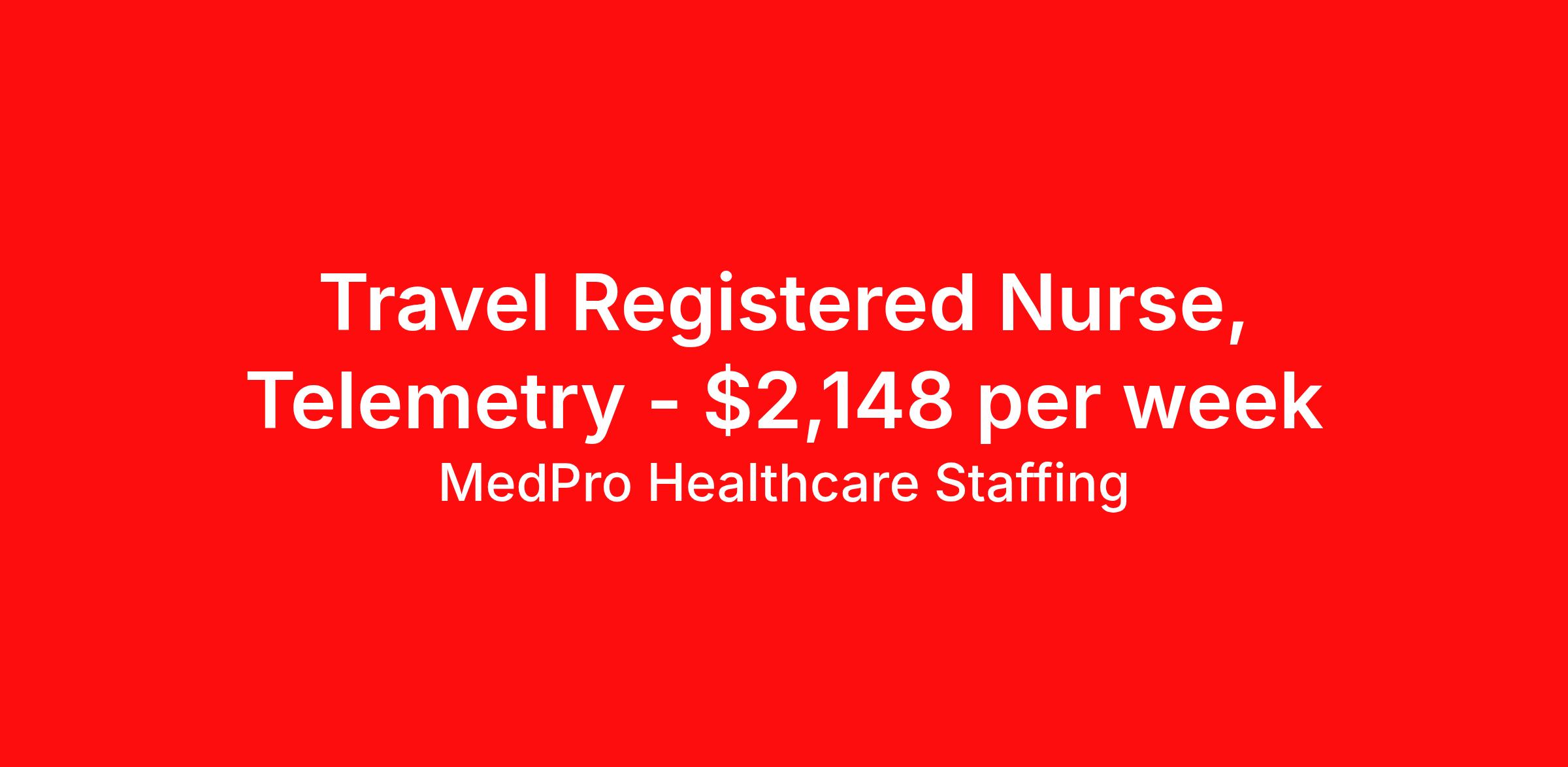 MedPro Healthcare Staffing is seeking a travel nurse RN Telemetry for a travel nursing job in Alexandria, Louisiana. Job Description & Requirements Specialty: Telemetry Discipline: RN Start Date: 04/06/2026 Duration: 13 weeks 36 hours per week Shift: 12 hours, nights Employment Type: Travel MedPro Healthcare Staffing , a Joint Commission-certified staffing agency, is seeking a quality Telemetry registered nurse for a travel assignment with one of our top healthcare clients. Requirements Active RN License Degree from accredited nursing program BLS & ACLS Certifications Eighteen months of recent experience in an Acute Care Telemetry setting Other requirements to be determined by our client facility Benefits Weekly pay and direct deposit Full coverage of all credentialing fees Private housing or housing allowance Group Health insurance for you and your family Company-paid life and disability insurance Travel reimbursement 401(k) matching Unlimited Referral Bonuses up to $1,000 Duties Responsibilities As part of the telemetry unit, Telemetry Nurses (RN) provide care by connecting patients to machines that measure heart rate, blood pressure, breathing rate, as well as blood-oxygen levels and electrocardiogram information. These machines then send data to computer screens for nurses to monitor. Telemetry Nurses read and interpret the data to better determine patient care. Provide care for patients by comfortably connecting them to machines that measure blood pressure, heart rate, breathing rate, blood-oxygen level, and electrocardiogram information. Monitor and interpret data to assess any potential health problems and needs. Develop nursing care plans and maintaining accurate medical records. About Agency MedPro Healthcare Staffing is a Joint Commission certified provider of contract staffing services. Since 1983, we have placed nursing and allied travelers in top healthcare facilities nationwide. Join us today for your very own MedPro Experience®. If qualified and interested, please call for immediate consideration. MedPro Staffing is an Equal Opportunity Employer. All applicants will be considered for employment without attention to race, color, religion, national origin, age, sex, disability, marital status or veteran status. Key Words: Telemetry Nurse, RN-Tele, Telemetry Nursing positions, Travel Nurse, Contract Nurse, Agency Nurse, EKG, Tele, Telemetry Contracts, Registered Nurse, Telemetry Nurse, Tele Nurse, RN, Registered Nurse, Telemetry Nurse, RN-Tele, Travel Nursing *Weekly payment estimates are intended for informational purposes only and include a gross estimate of hourly wages and reimbursements for meal, incidental, and housing expenses. Your recruiter will confirm your eligibility and provide additional details. MedPro Job ID a0Fcx00000Gb3fFEAR. Pay package is based on 12 hour shifts and 36 hours per week (subject to confirmation) with tax-free stipend amount to be determined. Posted job title: Telemetry Registered Nurse Nursing: Telemetry. About MedPro Healthcare Staffing At MedPro Healthcare Staffing , we believe no one cares more for caregivers than we do. Our mission is simple: you focus on your patients, and we’ll take care of the rest. As a Joint Commission-certified leader in temporary and contract healthcare staffing since 1983, MedPro has proudly connected nursing and allied travelers with top healthcare facilities across the nation. With thousands of job opportunities available nationwide, we make it easy to find assignments that align with your goals and lifestyle. Our on-staff clinical support team—alongside a compassionate group of experienced recruiters—provides hands-on guidance every step of the way. From Day 1 medical benefits and a 401(k) plan to personalized career support, we’re committed to ensuring every professional we serve feels valued, cared for, and empowered to succeed. Guided by a CEO who is a Registered Nurse, MedPro is built on a foundation of clinical insight and genuine compassion for the caregiving community. Through The MedPro Experience® , we deliver travel assignments that are rewarding, memorable, and designed to help you DREAM big, EXPLORE often, and ACHIEVE greatness. Benefits Day 1 medical, dental, and vision benefits for you and your family Weekly pay and direct deposit Unlimited Referral Bonuses starting at $500 On Staff Clinical Support Team Access to nationwide travel assignments MPX Mobile app -24/7 real-time access to jobs, credentials, assignment details, and more Full coverage of all credentialing fees Private housing or housing allowance Tax Free Per Diems, Housing Stipends and Travel Reimbursements Company-paid life and disability insurance Travel reimbursement 401(k) matching Benefits Weekly pay Referral bonus Employee assistance programs
