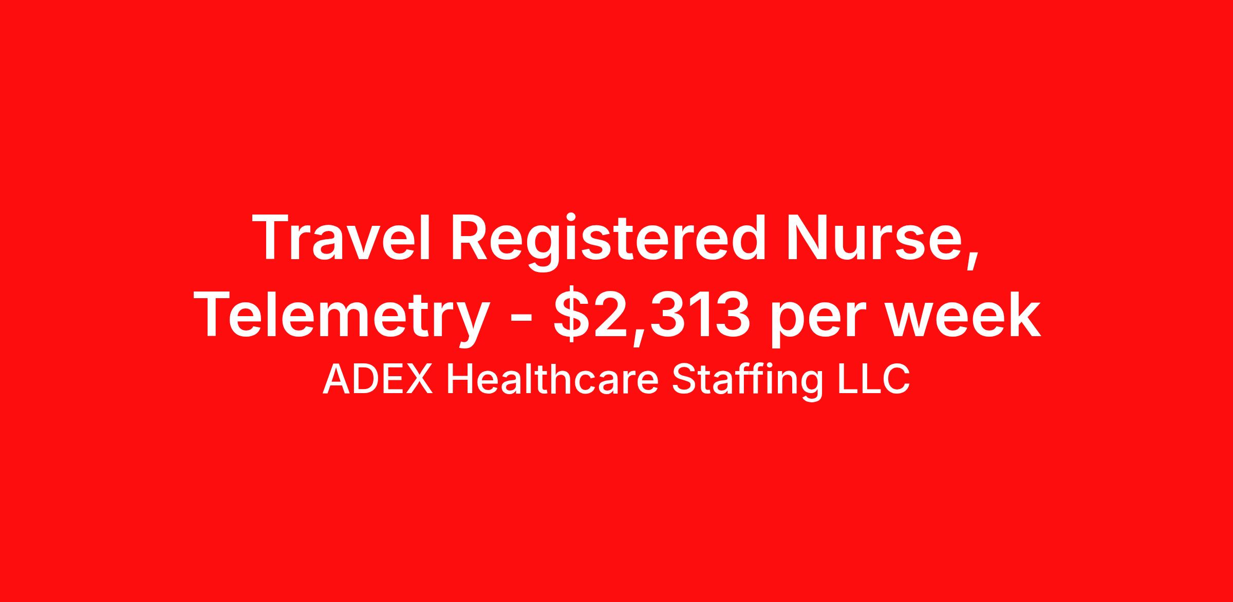 ADEX Healthcare Staffing LLC is seeking a travel nurse RN Telemetry Level I for a travel nursing job in Alexandria, Louisiana. Job Description & Requirements Specialty: Telemetry Discipline: RN Start Date: 04/06/2026 Duration: 13 weeks 36 hours per week Shift: 12 hours, nights Employment Type: Travel RN Position Job Notes: Travel or Local Registered Nurse needed for ASAP start. A minimum of 2 years of recent hospital bedside experience is required. Candidates must be able to start within 5 weeks. Opportunity for extension upon successful completion of the initial assignment. $750 referral bonus available. Opportunity: RN - Tele Job Details: • Work 12-hour night shifts from 7:00 PM to 7:00 AM • Full-time position with every other weekend requirement • No on-call responsibilities • Nurse to patient ratio of 5:1 to 6:1 depending on staffing • Minimum 1-2 years of nursing experience required • At least 6 months of telemetry experience required • Care for cardiac and telemetry patients (not a step-down unit) • Required certifications: BLS and ACLS from AHA • RN license in state of employment or compact required • Provide routine and complex nursing care using the nursing process • Administer medications and treatments while monitoring for side effects • Document patient history, symptoms, medications, and care provided • Assess learning needs and provide patient/family education • Make appropriate assignments and delegate to other care providers • All newly hired experienced RNs must attend New Nurses Orientation within first 30 days • Precepted by designated trained staff member with competency validation required • Temp to perm possibility available Facility: This healthcare facility operates a dedicated telemetry unit that specializes in cardiac and telemetry patient care. The organization maintains high standards for nursing practice and provides comprehensive orientation programs for new hires, including residency programs for newly licensed RNs. The facility emphasizes competency-based practice and provides ongoing education and validation requirements to ensure quality patient care. Location: Alexandria, LA Alexandria offers a charming blend of Louisiana culture and history, situated in the heart of the state along the Red River. The area provides affordable living costs, rich cultural heritage, and easy access to outdoor recreation opportunities, making it an attractive location for healthcare professionals seeking a welcoming community atmosphere. Adex Job ID 995371. Pay package is based on 12 hour shifts and 36 hours per week (subject to confirmation) with tax-free stipend amount to be determined. About ADEX Healthcare Staffing LLC ADEX has been placing healthcare professionals across the US since 2004. Originally founded in Atlanta, GA, the company's headquarters are now located in Tampa, FL. JCAHO certified since 2009. Benefits Referral bonus