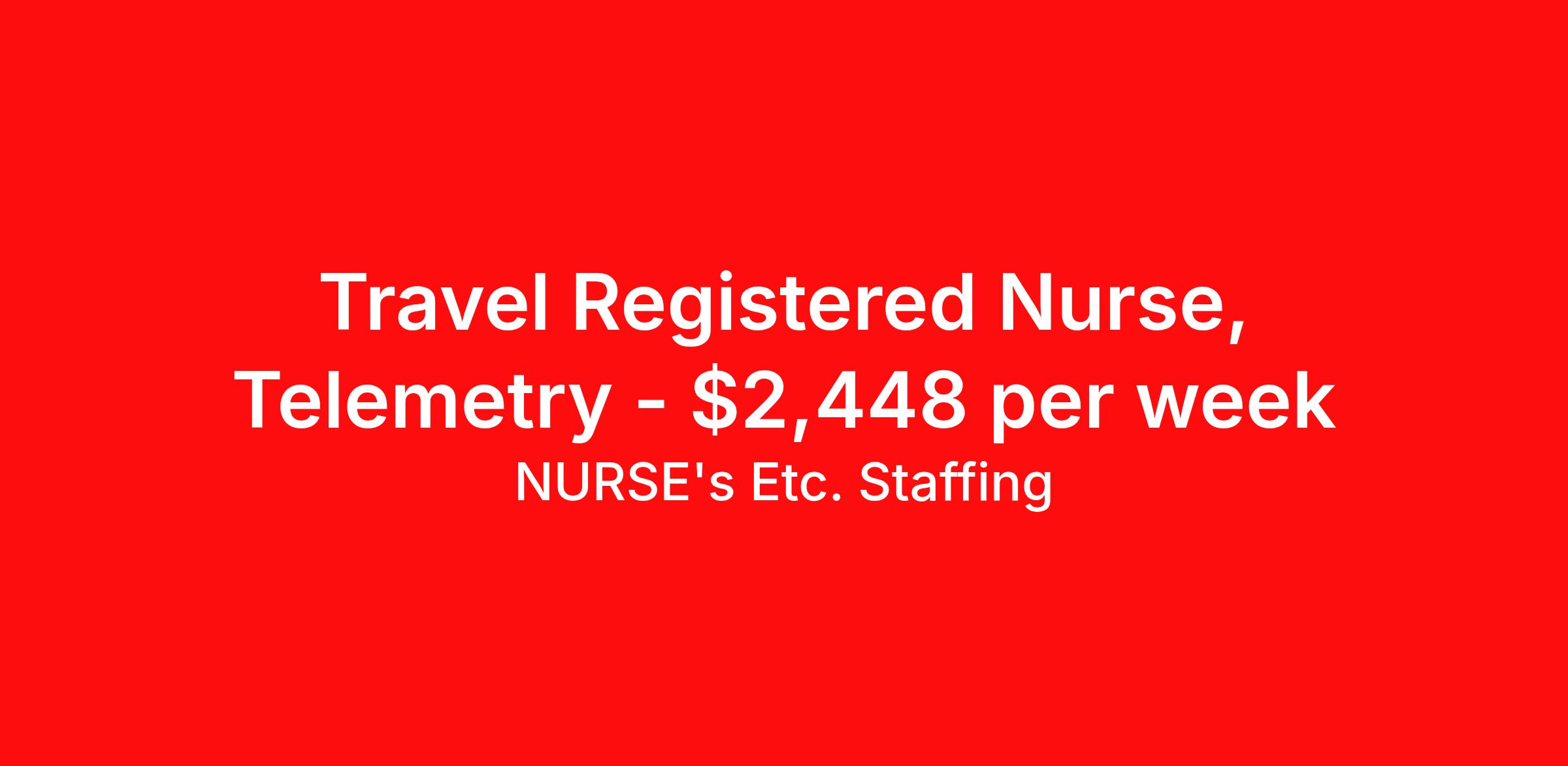 NURSE's Etc. Staffing is seeking a travel nurse RN Telemetry for a travel nursing job in Alexandria, Louisiana. Job Description & Requirements Specialty: Telemetry Discipline: RN Start Date: 04/06/2026 Duration: 13 weeks 36 hours per week Shift: 12 hours, nights Employment Type: Travel CANDIDATE MUST HAVE 1-2 YEARS OF NURSING EXPERIENCE & AT LEAST 6 MONTHS OF TELEMETRY EXPERIENCE SHIFT: NIGHTS 7PM - 7AM START: ASAP REQUIRED Licenses, Registrations, or Certifications • BLS certification from AHA required • ACLS certification from AHA required NURSE's Etc. Staffing Job ID 511382. Pay package is based on 12 hour shifts and 36 hours per week (subject to confirmation) with tax-free stipend amount to be determined.