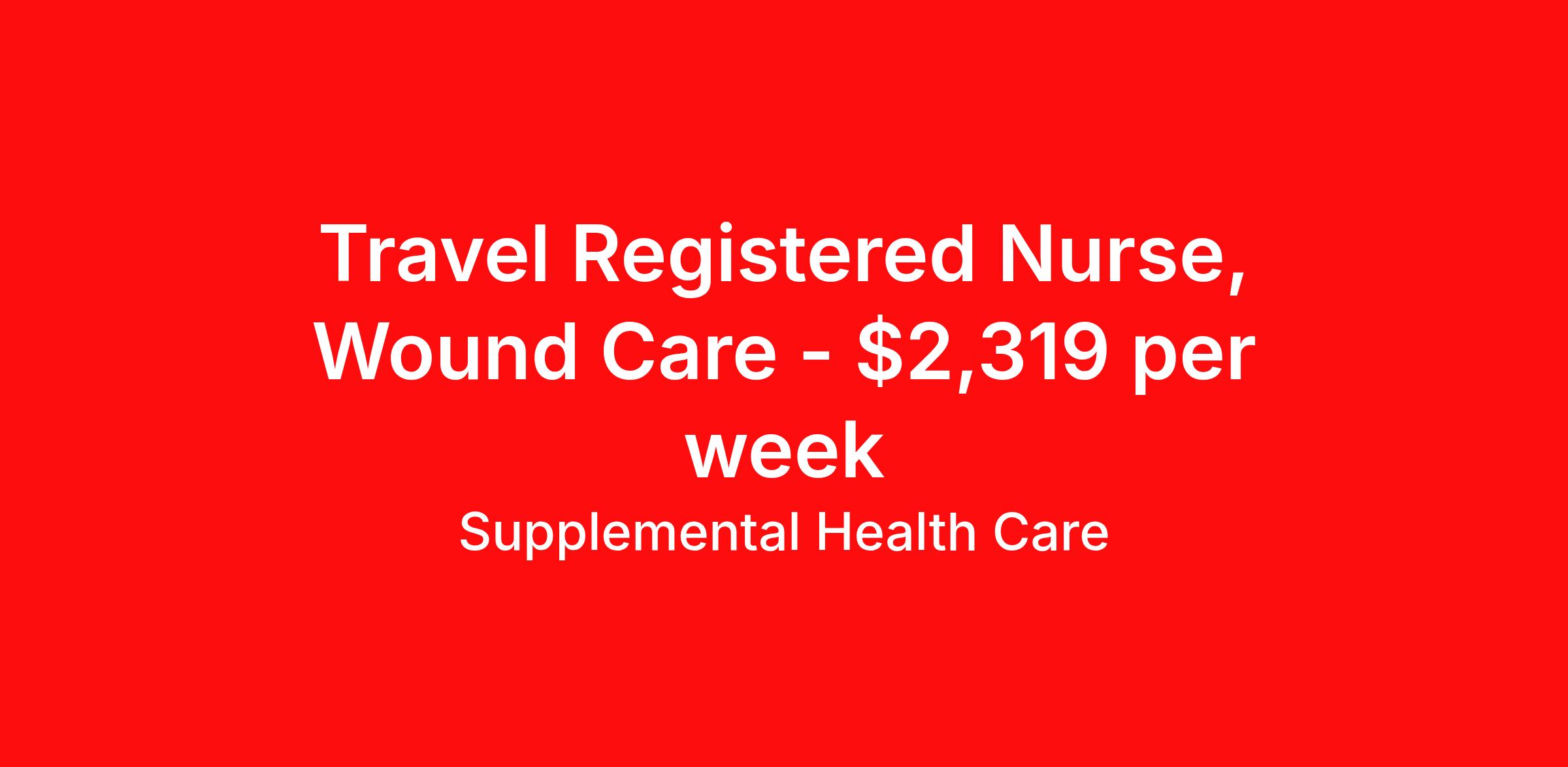 Supplemental Health Care is seeking a travel nurse RN Wound Care for a travel nursing job in Salem, Massachusetts. Job Description & Requirements Specialty: Wound Care Discipline: RN Start Date: ASAP Duration: 13 weeks 40 hours per week Shift: 8 hours, days Employment Type: Travel Job Description: Supplemental Health Care is connecting Wound Care Registered Nurses with top-tier hospital contracts in Salem, Massachusetts. Travel or stay local, either way, we’ll guide you to an opportunity that matches your goals, offering excellent pay, benefits, and support. Qualifications: Current Massachusetts Registered Nurse License / Certification American Heart Association BLS 1 to 2 years of recent Wound Care experience Wound Care Registered Nurse Contract Details: $2,100 - $2,319 per week* Weekly pay 13-week contract with possibility to extend AM shifts available *Estimated weekly payment may include both taxable wages and tax-free reimbursements for meals, housing, and incidentals. Please speak with a recruiter for details. What We Offer: Full medical, dental, vision, life, and even pet insurance! Round the clock support. No matter where you are or what time it is, Supplemental Health Care is standing by. SHC's Share the Care referral program is the most dynamic, profitable referral program in the industry. 401(k) Retirement Savings Program with a wide range of investment options. Discounted and free online access to CEU courses through Supplemental University. Apply now to launch your next Wound Care Registered Nurse assignment, or ask our team about other exciting Registered Nurse opportunities. Supplemental Health Care is an Equal Opportunity Employer. All candidates, including veterans and those with disabilities, are encouraged to apply. SHC will consider for employment qualified applicants with criminal histories in a manner consistent with the requirements of applicable local, state, or federal law. To learn more, visit www.shccares.com/eeo Supplemental Health Care Job ID 1466658. Pay package is based on 8 hour shifts and 40 hours per week (subject to confirmation) with tax-free stipend amount to be determined. Posted job title: Wound Care Registered Nurse About Supplemental Health Care At Supplemental Health Care, a simple belief in the power of caring guides a unique commitment to world-class service in healthcare staffing. For 40 years, we’ve supported talented professionals pursuing their life calling in hospitals, schools, home health, corrections, behavioral health, and other settings. At SHC, we inspire vital connections and enrich lives and inspire better outcomes. As recipients of the Best in Staffing Awards for both Client and Talent, Supplemental Health Care is proud to be among only 2% of staffing companies singled out for the distinction based on the real feedback of our employees and the clients we serve. SHC has also earned The Joint Commission’s Gold Seal of Approval and is named among the Largest Health Care Staffing companies in the United States by Staffing Industry Analysts. We are also thrilled to recognize our very own SLP, Dr. Kelly Byrd as the American Staffing Association 2024 National Staffing Employee of the Year and Health Care Sector All-Star. We’re honored to connect Dr. Byrd to employment, share her incredible story, and support her family literacy nonprofit. For everyone that we serve, SHC is the place where caring hearts thrive. Benefits Referral bonus Benefits start day 1 401k retirement plan Continuing Education Discount program Health savings account