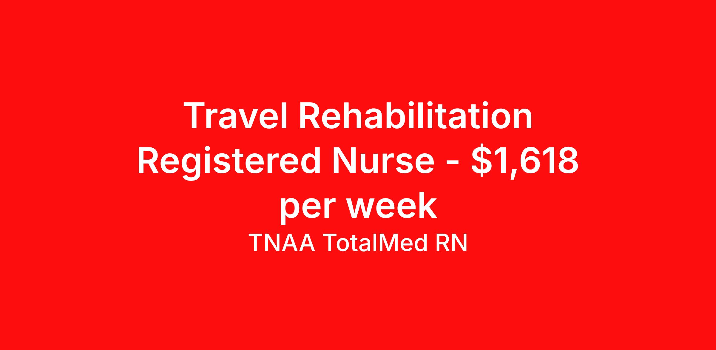 TNAA TotalMed RN is seeking a travel nurse RN Rehabilitation for a travel nursing job in Natchez, Mississippi. Job Description & Requirements Specialty: Rehabilitation Discipline: RN Duration: 13 weeks 36 hours per week Shift: 12 hours, rotating Employment Type: Travel We're looking for Registered Nurses (RN) for an immediate travel opening in Natchez, MS at our Rehabilitation Hospital. The right RN should have at least 1 year of experience in rehabilitation setting. Read below for more details. As an RN in a Rehabilitation Hospital, you will provide specialized care to patients recovering from serious illnesses, injuries, or surgeries. You'll work closely with a multidisciplinary team to create and implement individualized care plans, ensuring that patients regain as much function and independence as possible. As an RN in a Rehabilitation Hospital, you should be prepared to perform the following tasks: Patient Care: Provide direct care to patients with neurological, orthopedic, or other rehabilitation needs, including stroke recovery, spinal cord injuries, joint replacements, or brain injuries Care Planning: Collaborate with physicians, physical therapists, occupational therapists, and other members of the rehab team to develop and implement personalized care plans that support patient recovery goals Monitoring & Assessment: Regularly assess patients' physical and mental condition, monitor vital signs, neurological function, and progress in therapy. Adjust care plans as necessary based on patient response. Medication Administration: Administer medications as prescribed, monitor for side effects, and ensure proper dosage and timely delivery. Assist with pain management strategies to promote patient comfort during rehabilitation Patient Education: Educate patients and families about recovery goals, rehabilitation techniques, safety precautions, and strategies to promote independence in daily activities Emergency Response: Respond to medical emergencies, including sudden changes in condition, respiratory distress, or cardiac issues, and act quickly to stabilize patients when needed. Documentation: Maintain accurate and up-to-date patient records, documenting assessments, treatments, and progress toward rehabilitation goals in the electronic health record (EHR) Discharge Planning: Assist with discharge planning, ensuring patients and families are prepared for post discharge care, including home modifications, continued therapies, and follow-up appointments Collaboration: Work closely with interdisciplinary teams, including physicians, physical therapists, occupational therapists, case managers, and social workers, to provide comprehensive care tailored to each patient's needs The ideal candidate must have at least one year of experience as an RN in a rehabilitation setting. Current BLS certification is required. Additional certifications may be required. Must be eligible for state licensure. Rehabilitation Nurses should be able to stand or walk for long periods and must be able to bend, stoop, and lift with proper body mechanics. They should have excellent communication and organizational skills, as well as the ability to manage complex care needs. They must be compassionate, patient, and skilled in promoting recovery and independence for patients recovering from serious injuries or illnesses. Requirements*: BLS, 2 Years * Additional certifications may be required before beginning an assignment. TotalMed Travel Job ID 1381940. Pay package is based on 12 hour shifts and 36 hours per week (subject to confirmation) with tax-free stipend amount to be determined. Posted job title: Rehab - Rehab RN - Travel Nurse About TNAA TotalMed RN TotalMed is a Top Ten, travel nursing and healthcare staffing agency with the mission of igniting purpose in healthcare. The organization staffs nurses, therapists, pharmacists, and other clinicians of all specialties in all 50 states. They offer local and travel jobs and match caregivers with the right organization to assist both facilities and patients. As an organization, they focus on putting highly-skilled staff into facilities to ensure adequate staffing for a better patient experience. TotalMed specializes in recruiting and placing healthcare professionals in travel, PRN, and permanent positions across the country in Nursing and Allied Health. Throughout 2020, the organization filled roles at even the most short-staffed facilities during the most challenging time in healthcare. By matching the right travel healthcare professional with the right organization, TotalMed continues to offer a lifeline to facilities and their patients. Benefits Weekly pay Guaranteed Hours Continuing Education 401k retirement plan Sick pay Wellness and fitness programs Referral bonus Employee assistance programs Medical benefits Dental benefits Vision benefits Benefits start day 1