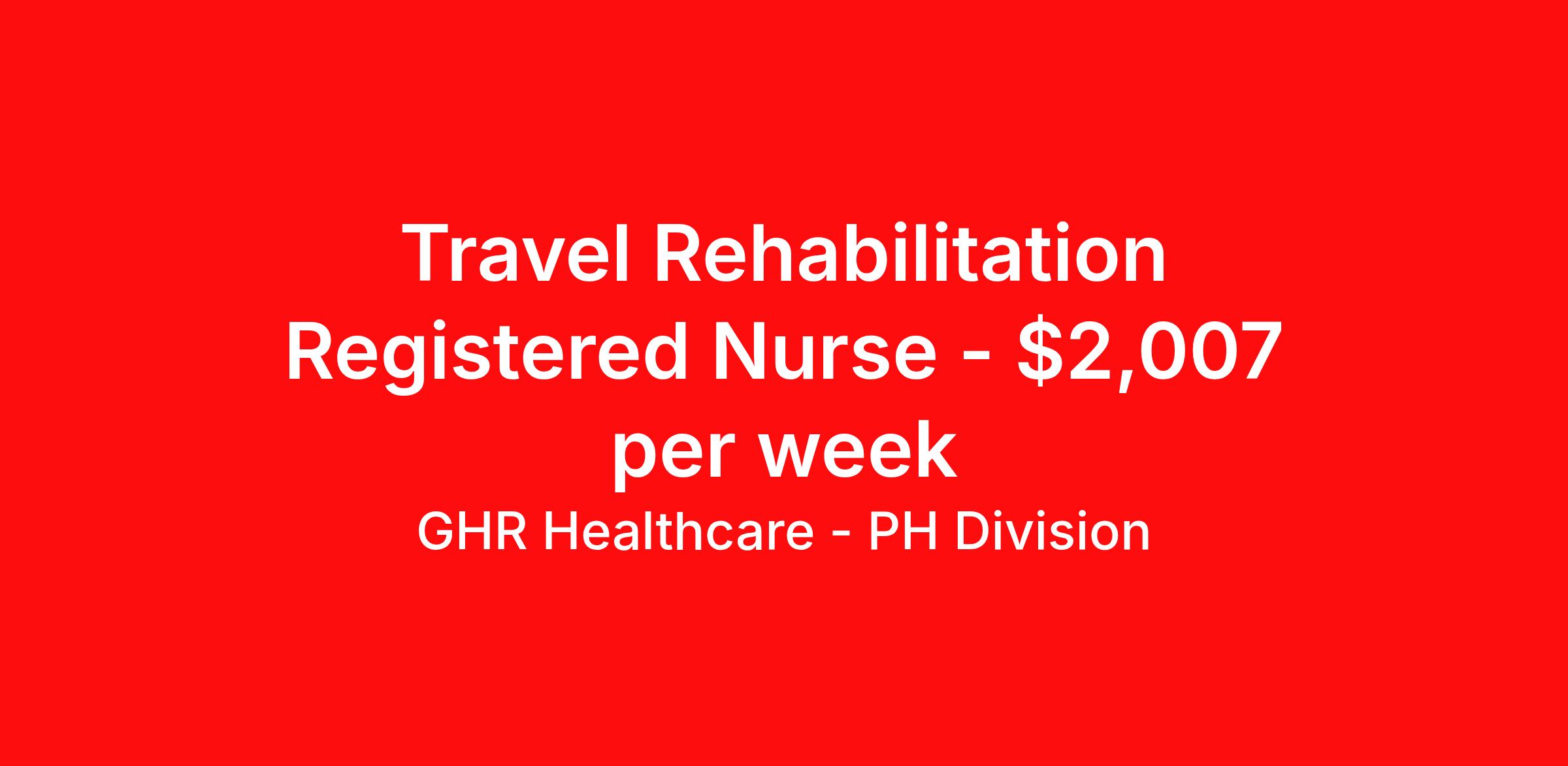 GHR Healthcare - PH Division is seeking a travel nurse RN Rehabilitation for a travel nursing job in Tuscaloosa, Alabama. Job Description & Requirements Specialty: Rehabilitation Discipline: RN Start Date: 04/13/2026 Duration: 13 weeks 36 hours per week Shift: 12 hours Employment Type: Travel Planet Healthcare Job ID 76394268. Pay package is based on 12 hour shifts and 36 hours per week (subject to confirmation) with tax-free stipend amount to be determined. About GHR Healthcare - PH Division For over 30 years, GHR Healthcare has been the bridge between healthcare professionals and the facilities that need them nationwide. We're committed to uncovering your ideal fit, supported by GHR's dedication to competitive compensation, transparent communication, and a devoted team that genuinely cares about your career journey. You can trust us to stand by your side as your advocate, confidante, and partner in advancing your career. At GHR, care and consideration are at the heart of everything we do. Visit ghrhealthcare.com to learn more.