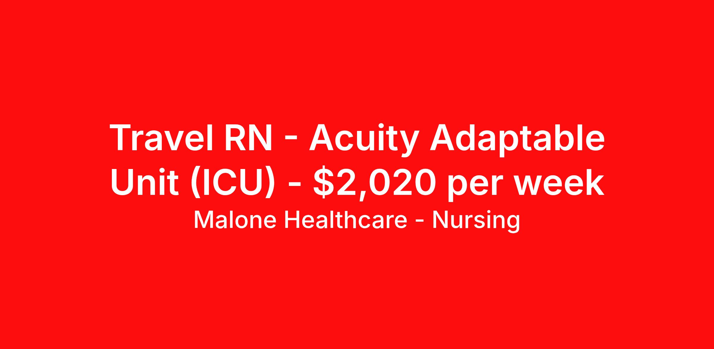 Malone Healthcare - Nursing is seeking a travel nurse RN ICU - Intensive Care Unit for a travel nursing job in Terre Haute, Indiana. Job Description & Requirements Specialty: ICU - Intensive Care Unit Discipline: RN Duration: 13 weeks 36 hours per week Shift: 12 hours, days, nights Employment Type: Travel About Malone Healthcare - Nursing With a commitment to providing a higher standard of service and experience in patient care, Malone Healthcare places expert nurses and allied health professionals in rewarding careers throughout the United States. As a leading healthcare staffing agency, Malone’s focus on compliance and integrity translates to a seamless experience for our team members and partner facilities. When you work with Malone Healthcare, you can rely on over 50 years of proven experience placing exceptional professionals in quality healthcare settings. Benefits Weekly pay Holiday Pay Guaranteed Hours Continuing Education 401k retirement plan Pet insurance Referral bonus Medical benefits Dental benefits Vision benefits License and certification reimbursement Life insurance