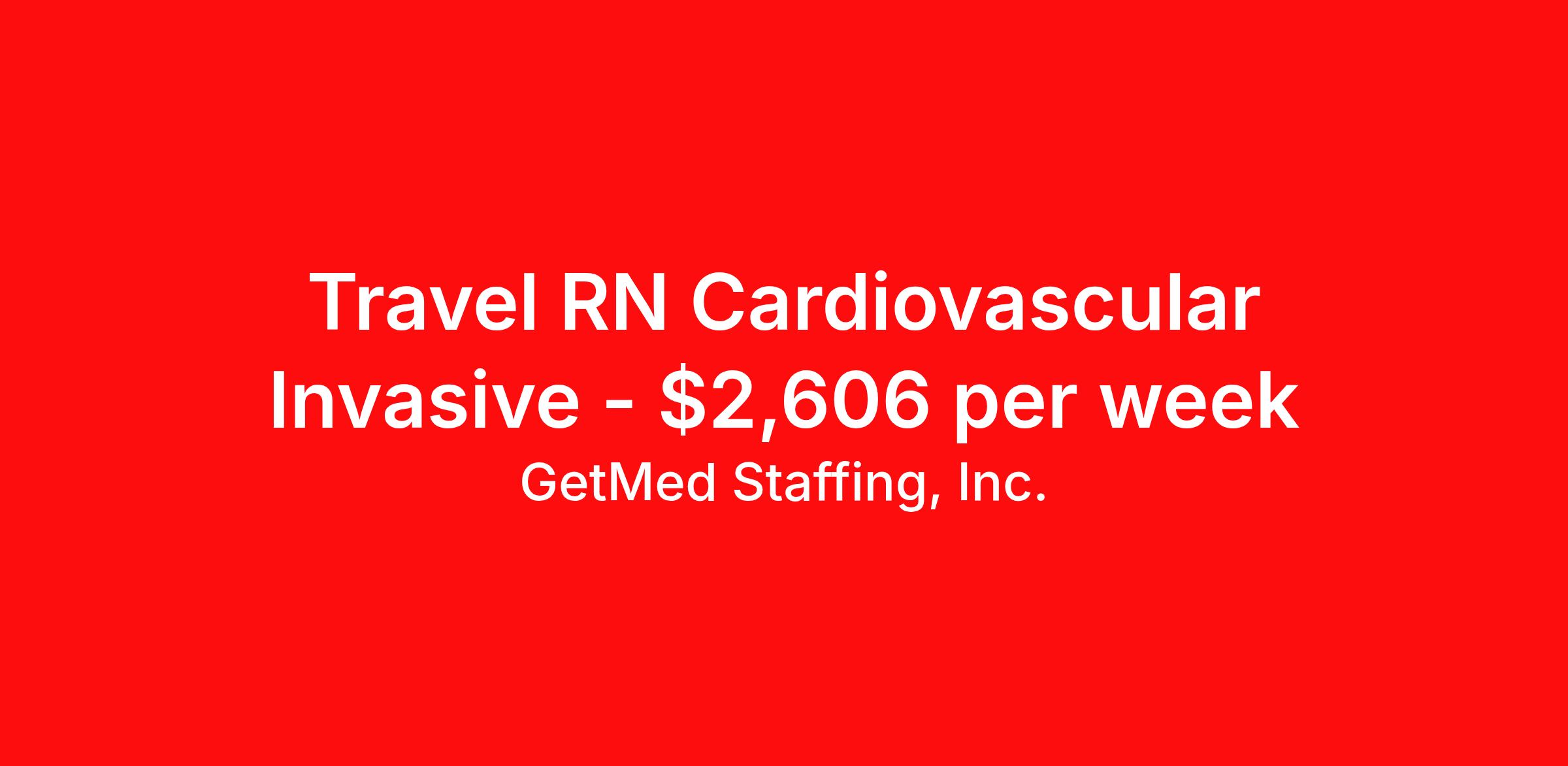 GetMed Staffing, Inc. is seeking a travel nurse RN Cardiac Cath Lab for a travel nursing job in Peoria, Illinois. Job Description & Requirements Specialty: Cardiac Cath Lab Discipline: RN Start Date: 04/13/2026 Duration: 20 weeks 40 hours per week Shift: 10 hours, days Employment Type: Travel GetMed Staffing is searching for a strong CVICU RN to assist our traveler-friendly client. A minimum of 1-2 years of experience is required. Traveling with GetMed Staffing offers the unique opportunity to gain diverse experiences, both personally and professionally. Gain experience that matters. GetMed Staffing, Inc. Job ID 36184956. Pay package is based on 10 hour shifts and 40.0 hours per week (subject to confirmation) with tax-free stipend amount to be determined. Posted job title: RN:CVICU,07:00:00-17:00:00 About GetMed Staffing, Inc. We are a diversity owned company, specializing in healthcare recruiting services. We truly understand how important a healthcare travelers' relationship is with their recruiter, as well as our relationship is with our healthcare facilities. We recognize that the needs of our healthcare travelers can vary, and therefore we provide the personalized touch necessary to ensure a successful travel assignment each and every time. Our healthcare facilities and clients benefit from us putting our healthcare travelers first. GetMed Staffing is excited to be a leader within the industry by focusing on providing healthcare travelers with more choices and possibilities as they plan for their next healthcare travel assignment. Benefits Life insurance Medical benefits Dental benefits Vision benefits 401k retirement plan