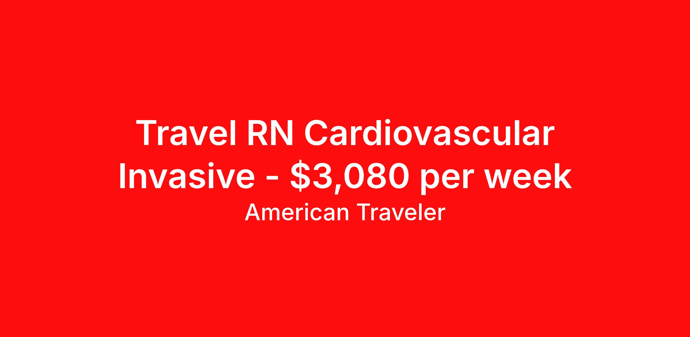 American Traveler is seeking a travel nurse RN Cardiac Cath Lab for a travel nursing job in Peoria, Illinois. Job Description & Requirements Specialty: Cardiac Cath Lab Discipline: RN Start Date: 04/13/2026 Duration: 20 weeks 40 hours per week Shift: 10 hours, days Employment Type: Travel Assignment Overview Shift: Days, 4x10hrs Hours: 40 hrs/wk Start Date: Apr 13, 2026 Length: 20 weeks Openings: 1 Description American Traveler is hiring a Cardiovascular Invasive RN with a minimum of 3 years of experience and Epic EMR proficiency for a 4x10 day shift contract. Details Cardiovascular Invasive unit in an acute care hospital setting 4x10 hour day shifts 40 hours per week Requirements Minimum 3 years of applicable cardiovascular invasive nursing experience Active IL RN license in good standing (temp license accepted); license required if applicable BLS and ACLS (AHA) required ASN required; BSN preferred Epic EMR experience required Level 1 Trauma experience required Fluency in English (speak, read, write) Basic computer proficiency including word processing, spreadsheet, email, and web browser Additional Information Applies the nursing process to assess, plan, implement, and evaluate individualized patient care in collaboration with the interdisciplinary team Coordinates patient care from admission to discharge and advocates for patients in collaboration with physicians and team members Performs bedside lab testing and associated quality control in compliance with provider orders and hospital procedures Demonstrates professional accountability through ongoing self-development, evidence-based practice, and clinical knowledge sharing Candidates must live more than 50 miles from the facility to be eligible RTO may not exceed 7 days for the duration of the contract Candidates who have been on assignment at any Carle Health location for 1 year must take a 6-month break before returning American Traveler Job ID P-686605. Pay package is based on 10 hour shifts and 40 hours per week (subject to confirmation) with tax-free stipend amount to be determined. Posted job title: Travel Cath Lab / EP Technologist - Cardiac Cath Lab About American Traveler With over 25 years of experience, American Traveler has established a reputation for outstanding customer service. Our team ensures a smooth, worry-free experience for those starting on or expanding their travel nursing and allied careers. With thousands of travel nursing and allied jobs nationwide, our attentive and approachable recruiters find positions that align perfectly with your career aspirations and personal requirements. American Traveler offers exceptional benefits, including premium medical, dental, vision and life insurance beginning day one of your assignment, generous 401(k) match, substantial housing stipends, and more. Additionally, with 24/7 support and access to our in-house clinicians, you are assured confidence and comfort throughout your assignment. With our team behind you, you can relax and enjoy a rewarding travel career.
