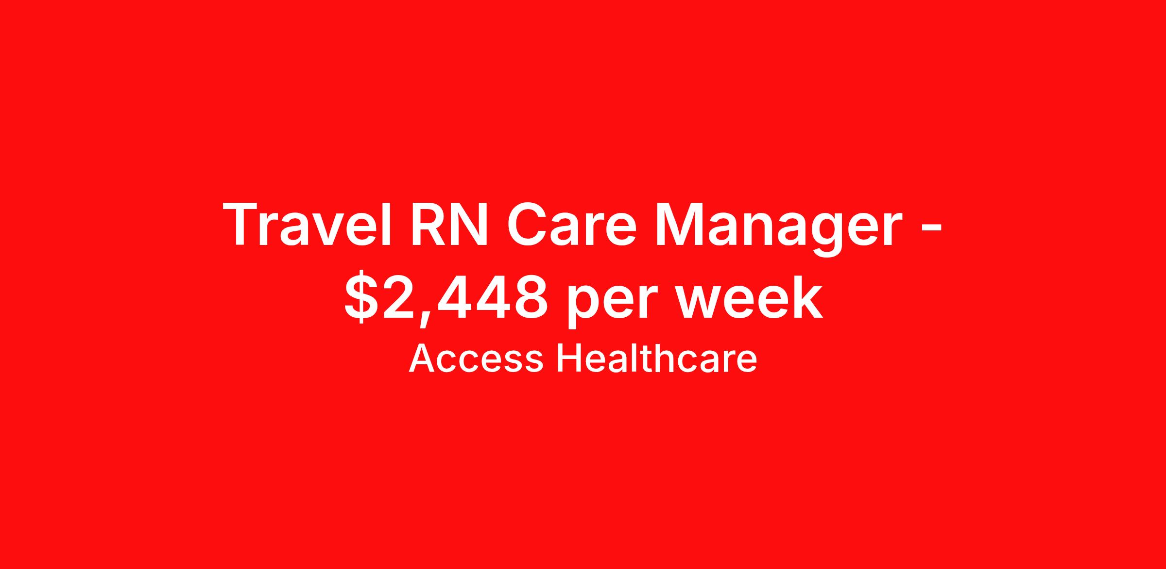 Access Healthcare is seeking a travel nurse RN Case Management for a travel nursing job in York, Maine. Job Description & Requirements Specialty: Case Management Discipline: RN Start Date: ASAP Duration: 13 weeks 40 hours per week Shift: 8 hours, days Employment Type: Travel Access Healthcare Job ID 75811951. Pay package is based on 8 hour shifts and 40 hours per week (subject to confirmation) with tax-free stipend amount to be determined. About Access Healthcare Access Healthcare aims to provide superior service to our nursing family by providing around the clock support, competitive pay packages and an unmatched benefits package! Unlike other agencies, we offer a true family feel and work with you to find the placement that is right for you. We offer one of the top leading pay packages in the industry and we are ready to get you the money you deserve! Access Healthcare was founded by two travel nurses, Danielle and Diego, who had a dream and a shared vision of creating an agency which all nurses would want to work with. Our passion has led us to where we are today as one of the top 10 agencies in our home state of New Jersey, with access to contracts in all 50 states! We encourage you to join our team and we cannot wait to get to know you!