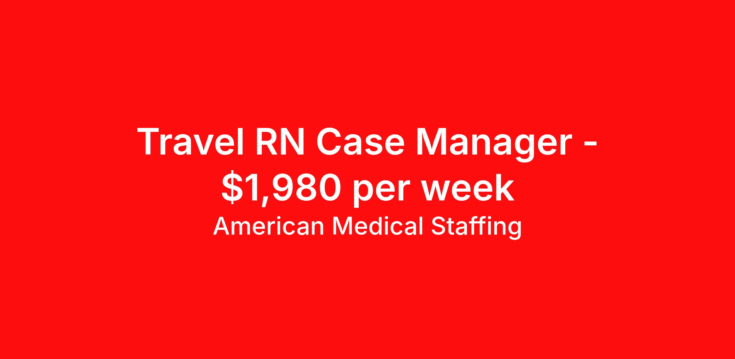 American Medical Staffing is seeking a travel nurse RN Case Management for a travel nursing job in Baltimore, Maryland. Job Description & Requirements Specialty: Case Management Discipline: RN Start Date: 04/14/2026 Duration: 13 weeks 40 hours per week Shift: 8 hours, days Employment Type: Travel We’re living in the new normal. Lives and careers look different today. So why shouldn’t you have a role that delivers excitement, fewer restrictions, and brings you closer to loved ones? At American Medical Staffing (AMS), we believe in supporting the pioneers who embody the sense of adventure each new placement brings and we’re looking for a RN: Case Manager for our Hospital contract assignment. Job Title : RN: Case Manager Location : Baltimore, Maryland Pay Range : Competitive, Negotiable, with Weekly Pay Schedule : 8-Hour Days, 07:00:00-15:00:00, 8.00-5 Contract Length : 13 Weeks Requirements : · 2 years of experience as a RN · Qualified applicants MUST have at least 2 years of experience in the Case Manager · Valid RN license · Be willing to obtain Maryland licensure Why Choose American Medical Staffing? · Day-One Benefits : Medical, dental, and vision plans with no waiting period. · Wellness PTO : Build 1 or 2 weeks of paid time off into your contract. · Hotel Discounts : Save up to 60% on hotel bookings with access to 700,000 discounted properties. · Loyalty Program : Earn financial incentives automatically based on hours worked and assignment type. · Referral Program : $500 for you and $500 for each referral after 450 hours—no limits. · Working Advantage : Access exclusive discounts on retail, entertainment, and travel. · Scrub Discount : 20% off all scrubs through our customized AMS store. · Retirement Plans : 401(k) options to help you plan for the future. · Compliance & Credentialing Support : Let us handle the logistics so you can focus on patient care. Responsibilities · Deliver specialized care to patients across a variety of acute and subacute units. · Work closely with a multidisciplinary team of healthcare professionals to provide comprehensive and compassionate care. · Monitor patient conditions, administer treatments and document outcomes. · Advocate for the best possible patient experience while supporting recovery, safety, and continuity of care. Apply now to take the next step in your journey. American Medical Staffing is an Equal Employment Opportunity Employer and does not discriminate on the basis of race, color, religion, sex, national origin, sexual orientation, gender identity, disability, age, or any other non-merit factor. American Medical Staffing Job ID 110212. Pay package is based on 8 hour shifts and 40.0 hours per week (subject to confirmation) with tax-free stipend amount to be determined. Posted job title: RN:Case Manager,07:00:00-15:00:00 About American Medical Staffing American Medical Staffing is a staffing agency headquartered in Baltimore, MD. Our goal is to CREATE an extraordinary experience for our health care professionals. Our roots are nurse owned and operated so we know what clinicians want - lots of options, a smooth and informed placement process, competitive and accurate pay, great customer service and responsiveness to requests, and advocacy when there is an issue. When AMS was founded in 2001, we started our company with a mission to be a better agency than our competitors. We have always put a heavy emphasis into what is best for our employees, not necessarily just our clients or our company. You are not an expense as you may be to a hospital; you are an asset. We take employee advocacy seriously; you are not just a number to us. The end result is that you don`t work for us; we work for you. Since starting in Baltimore, MD, we continue to grow throughout the country. Check out our industry leading reviews on Google and Indeed to see how much our clinicians enjoy working with us! · Benefits: AMS offers an array of benefits for any employee working 30 hours or more! Those eligible employees who choose to participate will pay the premiums with deductions from their pre-tax earnings. We offer a complete benefits package including Health Insurance, 401K with up to 2% match, Life, Vision, and Dental. From health and wellness support, financial or legal needs, or help with life's everyday challenges, our Employee Assistance Program provides you with resources, services and discounts to help you manage your unique concerns and save time, energy and money. We also offer additional Employee Perks that you can enjoy as an AMS employee: Scrubin – Uniform Discounts Working Advantage – unlimited access to thousands of exclusive discounts and special offers nationwide for theme parks, shows, tours, attractions, sports, concerts, hotels, rental cars, retail gift cards, movie tickets and much more Hotel Engine - Save up to 60% when booking hotel rooms, with access to more than 700,000 deeply discounted hotels worldwide. Discounted Pet Insurance Wellness Program, including fitness, nutrition and financial wellness Betterhelp - 1 month of free therapy, followed by a discounted rate for our Healthcare Professionals and their family members. Win Win Referral Bonus - $500 for you, and $500 for them! Benefits 401k retirement plan Life insurance Medical benefits Dental benefits Vision benefits