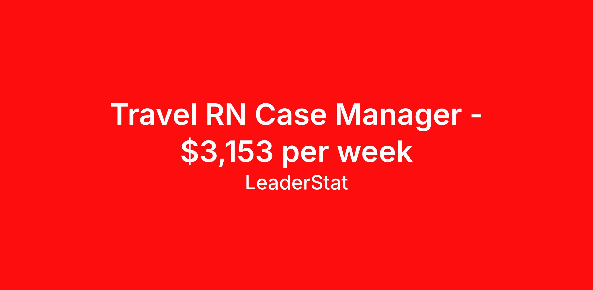 LeaderStat is seeking a travel nurse RN Case Management for a travel nursing job in San Francisco, California. Job Description & Requirements Specialty: Case Management Discipline: RN Start Date: 04/06/2026 Duration: 13 weeks 40 hours per week Shift: 8 hours Employment Type: Travel Estimated Pay Package : Up to $ 3153.07 per week *The above pay package is an estimate, please contact our team to put together your personalized pay package, as a variety of factors can influence your total pay.* Case Manager Registered Nurse in San Francisco, CA LeaderStat is currently seeking a Case Manager Registered Nurse for a(n) 13 week contract in CA. Start Date: 4/6/2026 End Date: 7/6/2026 Shift: Day 5x8-Hour (08:00 - 16:30) 1 year of experience working as a full-time Registered Nurse Clinical experience within the last 2 years Current State Licensure Current Relevant Certifications (BLS, ACLS, etc) The LeaderStat Difference Our LeaderStat recruiters are experts in travel healthcare! We work hard to find the best assignments for each candidate. However, our service doesn’t end at placement. We set you up for success by providing support throughout your contract… from start to finish! Our goal is to find the best travel healthcare assignments to fit your individual needs. While you focus on providing top-notch care to your patients, we’ll handle the rest. LeaderStat Perks & Benefits As a traveling healthcare professional with LeaderStat you receive excellent benefits: Weekly Pay & Direct Deposit W2 Employee Status 401(k) Retirement Plan Medical, Dental and Vision Insurance Referral Bonuses Dedicated Support Team To learn more about LeaderStat visit www.leaderstat.com/travel-nursing Equal Employment Opportunity: LeaderStat, Ltd. prohibits discrimination with respect to the hiring or promotion of individuals, conditions of employment, disciplinary and discharge practices or any other aspect of employment on the basis of sex, race, color, age, national origin, religion, disability, marital status, sexual orientation, gender identity, pregnancy or veteran status. LeaderStat Job ID 295644. Pay package is based on 8 hour shifts and 40 hours per week (subject to confirmation) with tax-free stipend amount to be determined. Posted job title: Case Manager Registered Nurse About LeaderStat LeaderStat is a National staffing, recruiting, and consulting firm dedicated to the healthcare industry. For 20 years, LeaderStat has been dedicated to partnering with exceptional healthcare providers to find them the very best assignments throughout the country. Specializing in Travel Nursing, Interim Leadership, Executive Search, and Consulting. When you work with the LeaderStat team, you work with a recruiter who is dedicated to finding you the perfect assignment. Why would you settle for less? Benefits Referral bonus License and certification reimbursement Medical benefits Holiday Pay Weekly pay 401k retirement plan