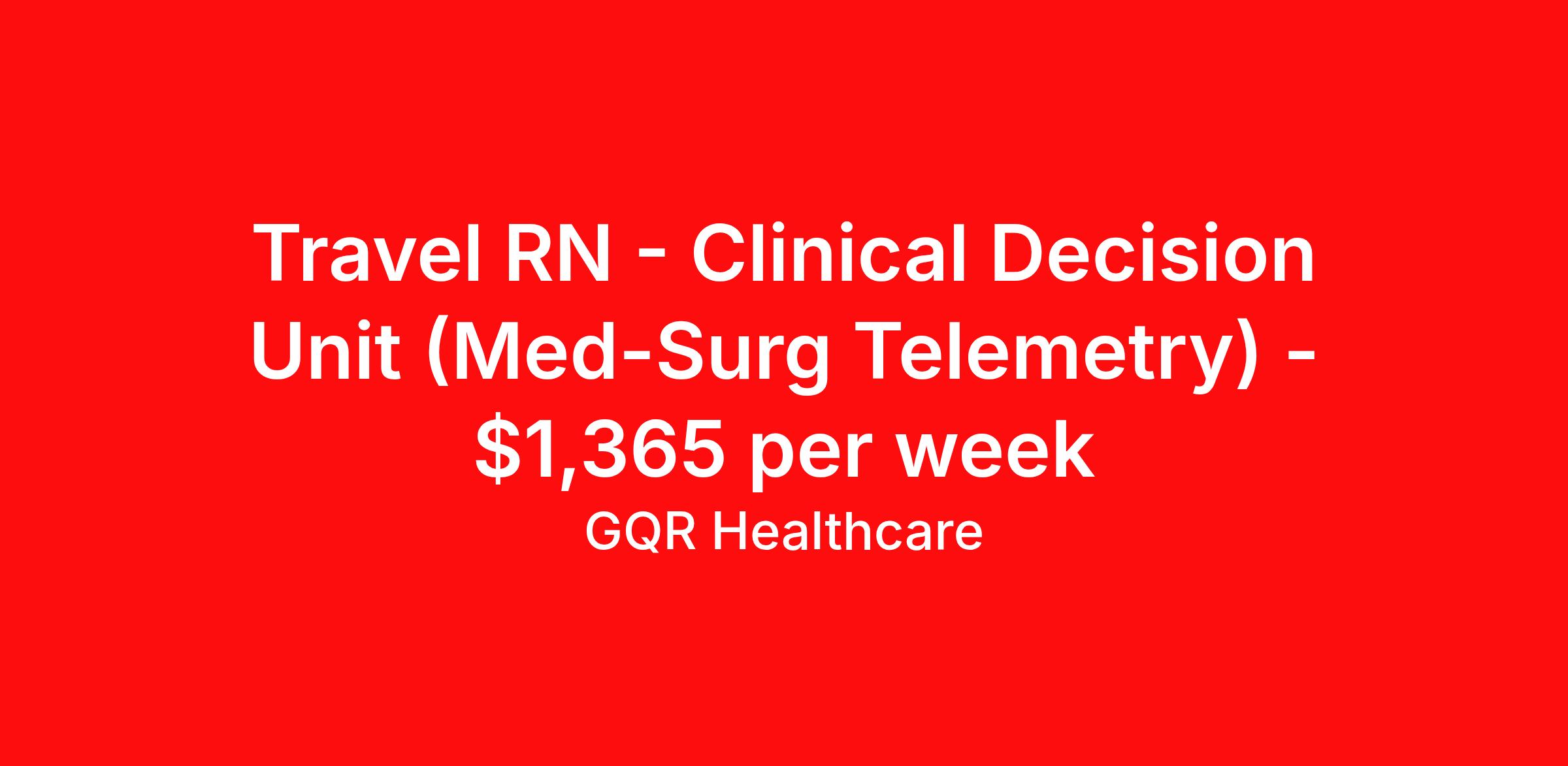 Travel RN - Clinical Decision Unit (Med-Surg Telemetry) - $1,365 per week