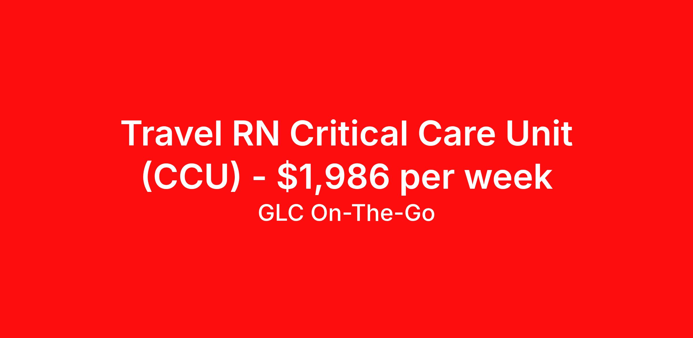 Travel RN Critical Care Unit (CCU) - $1,986 per week