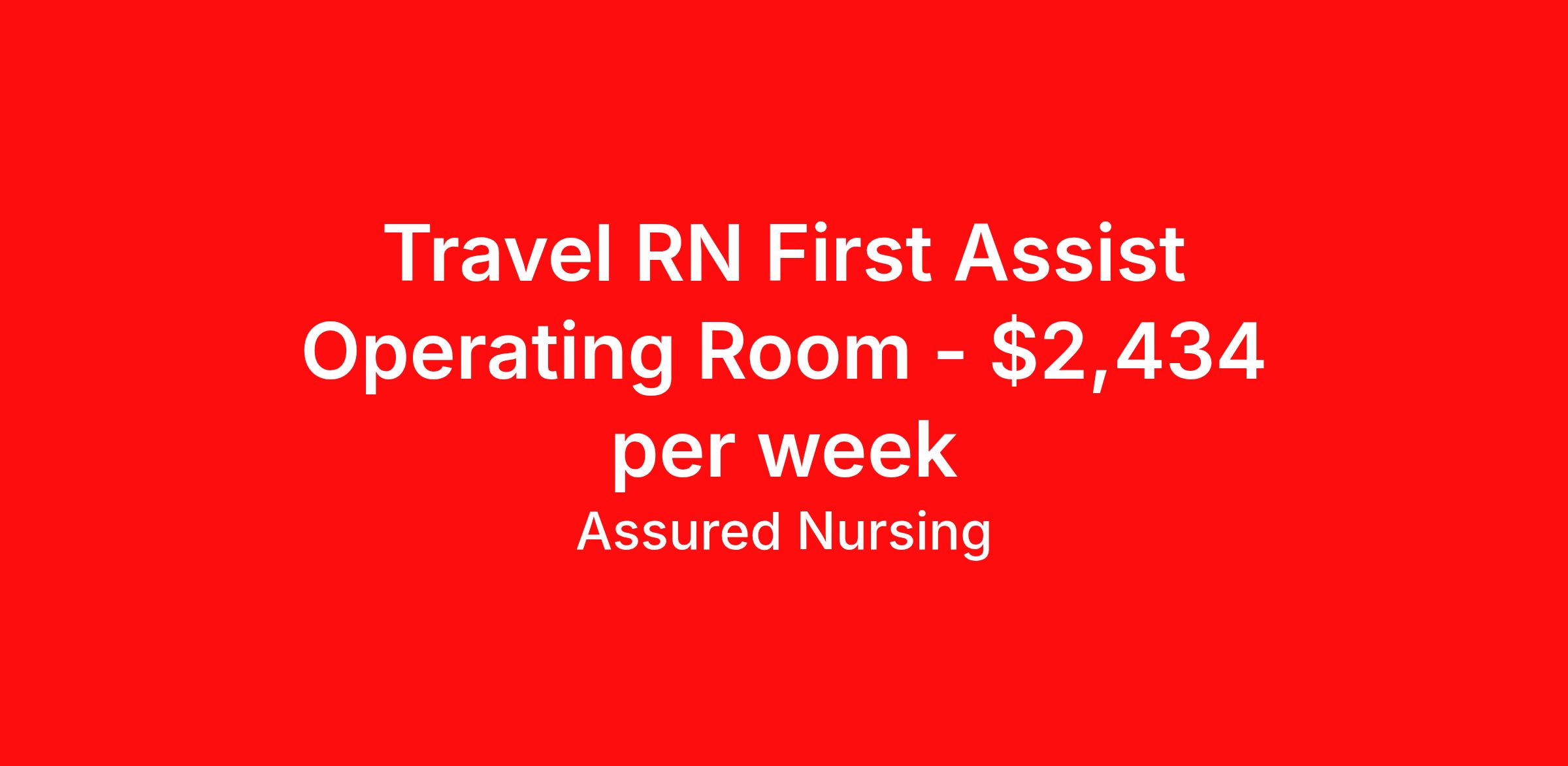 Assured Nursing is seeking a travel nurse RN OR - Operating Room for a travel nursing job in Washington, Missouri. Job Description & Requirements Specialty: OR - Operating Room Discipline: RN Start Date: ASAP Duration: 13 weeks 36 hours per week Shift: 12 hours, days Employment Type: Travel Assured Nursing is currently seeking a RN for a contract position in Washington Missouri . This is a 7a-7:30p, 07:00:00-19:30:00, 12.00-3 position in the Mercy . The ideal candidate will possess a current state license as a RN and have at least 2 years of recent experience as a OR RN . Assured Nursing Job ID 36094520. Pay package is based on 12 hour shifts and 36.0 hours per week (subject to confirmation) with tax-free stipend amount to be determined. Posted job title: RN:OR,07:00:00-19:30:00 Benefits Weekly pay Holiday Pay 401k retirement plan Referral bonus Medical benefits Dental benefits Vision benefits