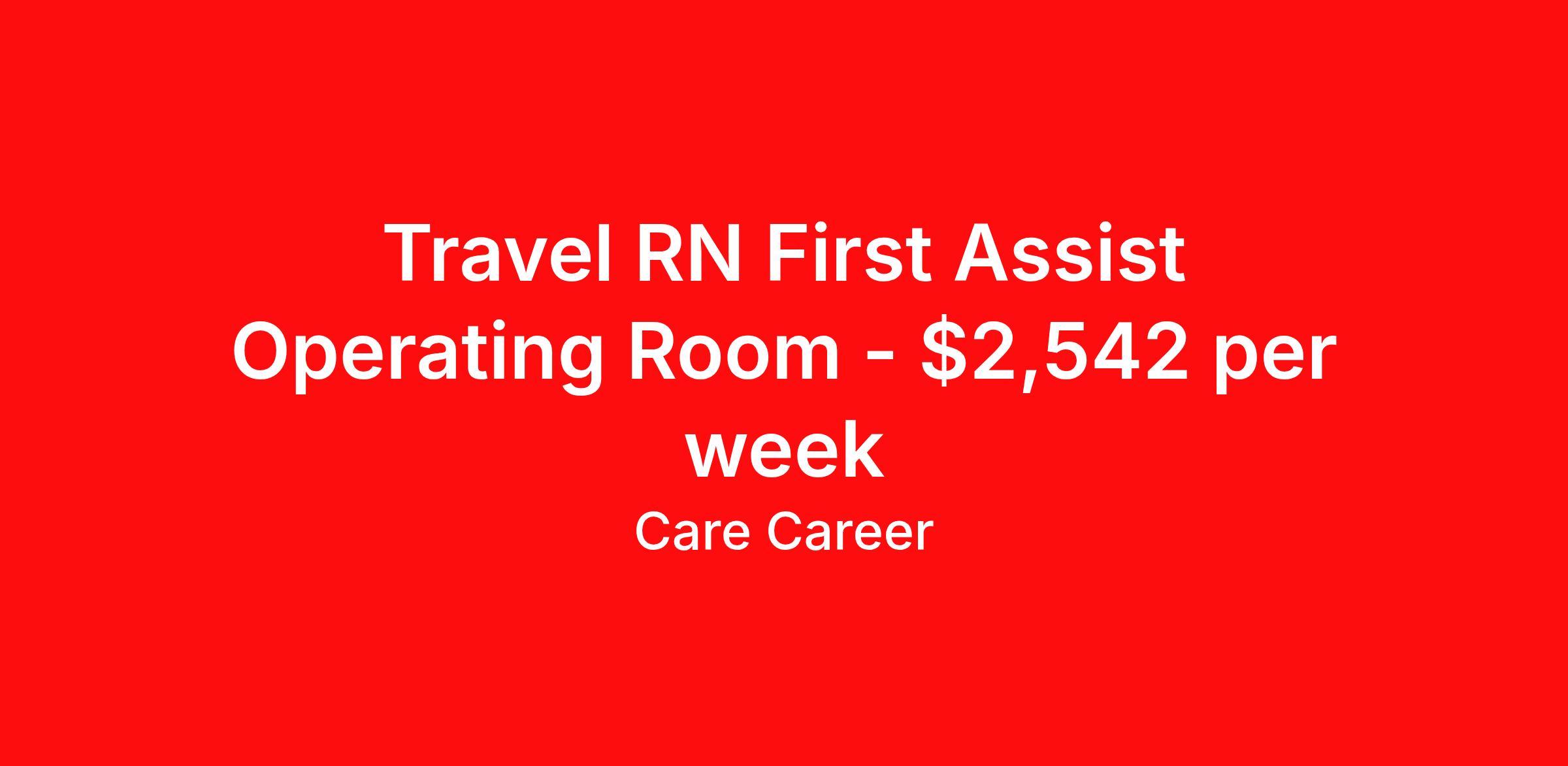 Care Career is seeking a travel nurse RN OR - Operating Room for a travel nursing job in Washington, Missouri. Job Description & Requirements Specialty: OR - Operating Room Discipline: RN Start Date: ASAP Duration: 13 weeks 36 hours per week Shift: 12 hours, days Employment Type: Travel Operating Room Nurses Responsible for planning, executing, directing and evaluating, direct and indirect nursing care given to the surgical patient. The nursing activities may include preoperative, intra-operative and postoperative evaluation. Operating Room Nurses may be employed in several roles including scrub, circulating or function in both roles. Care Career Job ID 36094912. Pay package is based on 12 hour shifts and 36.0 hours per week (subject to confirmation) with tax-free stipend amount to be determined. Posted job title: RN OR About Care Career Care Career brings together a portfolio of leading healthcare staffing organizations, each delivering specialized talent solutions across the industry. Wherever you want to go, We Make It Happen. With travel nursing jobs across the country, you can discover the possibilities that create the lifestyle and financial position that you have dreamed of. Care Career is a modern, transparent staffing firm creating the ultimate community of US. Benefits Referral bonus Weekly pay Medical benefits Continuing Education Dental benefits Vision benefits