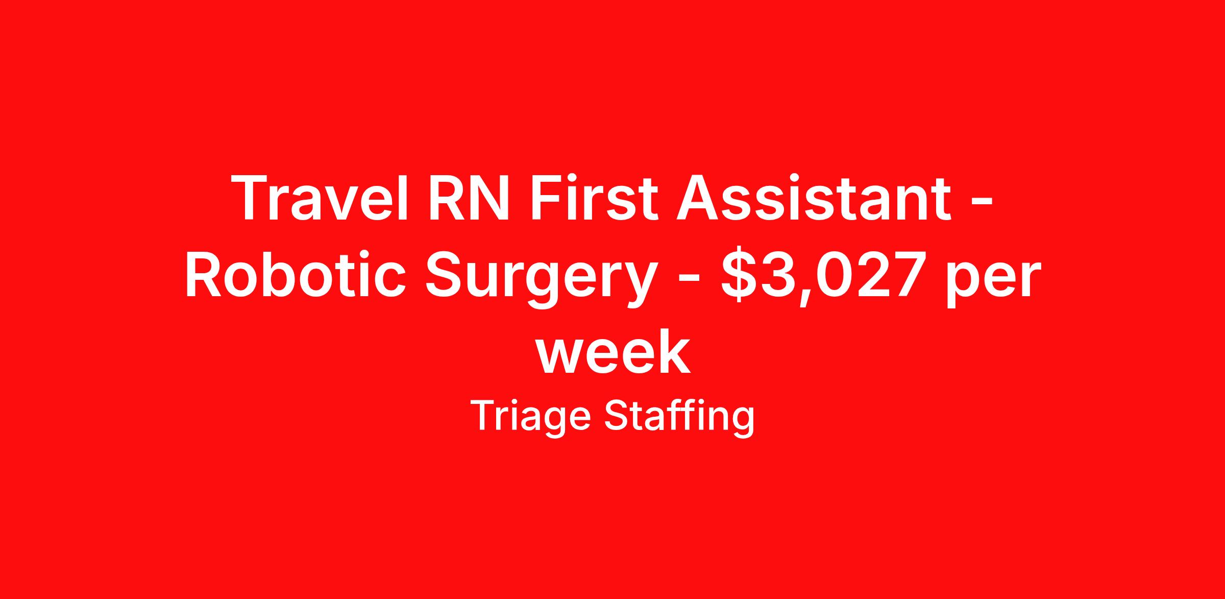 Travel RN First Assistant - Robotic Surgery - $3,027 per week