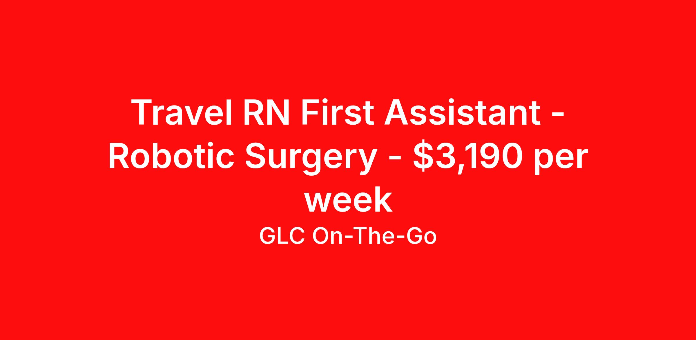 Travel RN First Assistant - Robotic Surgery - $3,190 per week