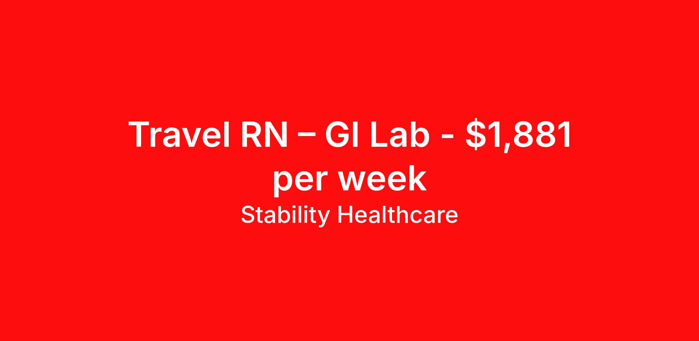 Stability Healthcare is seeking a travel nurse RN Endoscopy for a travel nursing job in Atlanta, Georgia. Job Description & Requirements Specialty: Endoscopy Discipline: RN Start Date: 04/13/2026 Duration: 13 weeks 40 hours per week Shift: 8 hours, days Employment Type: Travel Stability Healthcare is looking for a Endoscopy/GI RN contract position in Atlanta, GA. Endoscopy/GI Lab Registered Travel Nurses provide care to patients undergoing procedures in an endoscopy/GI Lab. Endoscopy/GI nurses assess and monitor patients during the procedures and are usually have responsibility associated with sedation and post-procedure care. *$600 travel bonus *Day 1 health insurance with United Healthcare *PTO plan start accruing on day 1, use during contract or cash out at the end! *Guaranteed stipend if facility calls you off *Extra hour bonus earn an additional hourly bonus for working over your weekly contracted hours Stability Job ID 828288. Pay package is based on 8 hour shifts and 40 hours per week (subject to confirmation) with tax-free stipend amount to be determined. Posted job title: Endoscopy/GI About Stability Healthcare Stability Healthcare was founded in 2009, with the mission of becoming the best Travel Nursing Agency in California. We have been rated one of the top travel nursing agencies and offer our nurses the highest paying travel nursing jobs available. We have access to the best travel assignments from 1000’s of facilities. You can start the year off in sunny California, spend the Spring in the Colorado Rockies, enjoy the Summer in the Mid-West, experience the change of seasons in Boston and New York, and hit the beaches of Florida in the winter. Our Nurses work in the best hospitals and health systems in the country. Benefits Guaranteed Hours Benefits start day 1