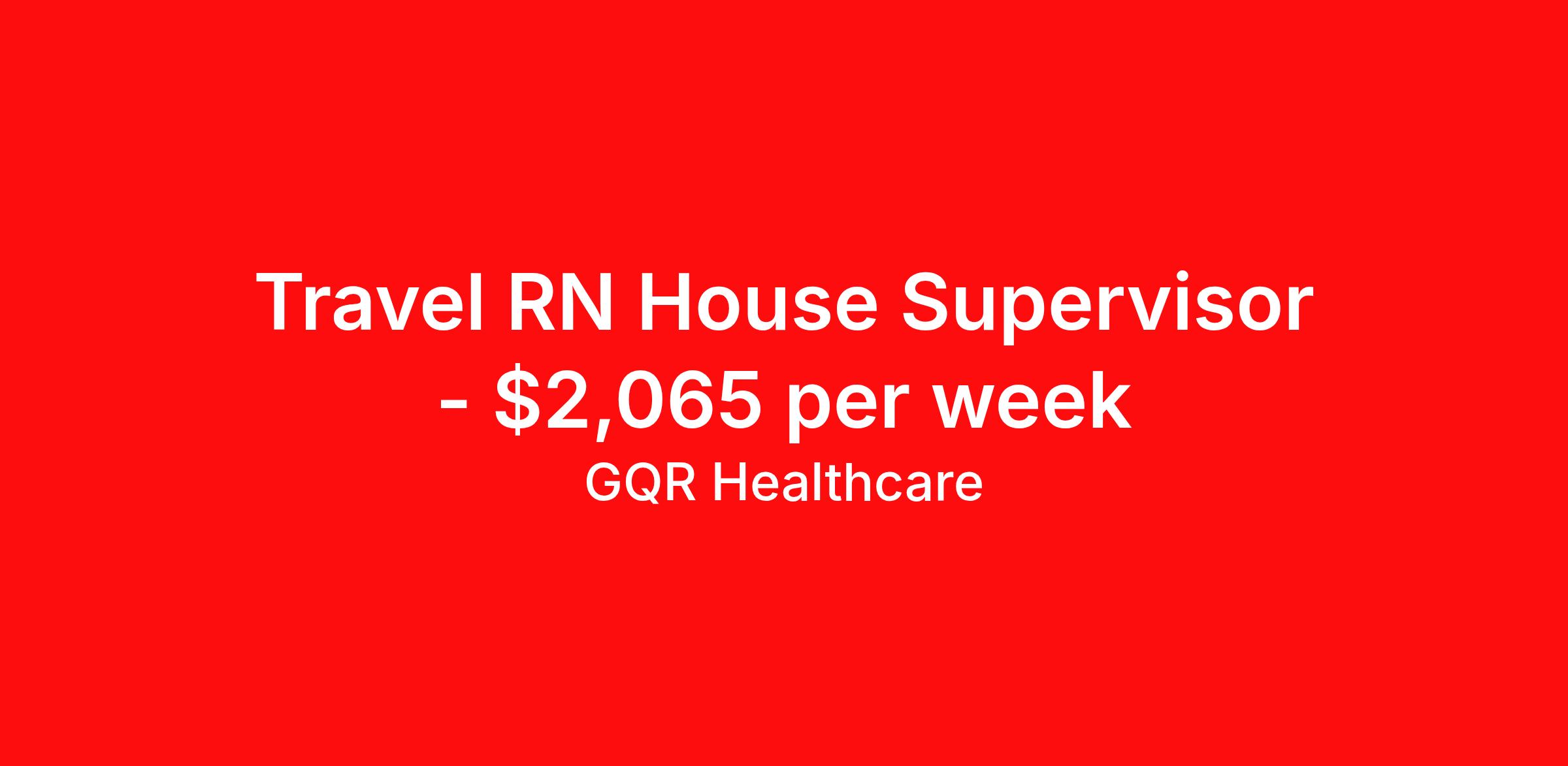 GQR Healthcare is seeking a travel nurse RN House Supervisor for a travel nursing job in Arcata, California. Job Description & Requirements Specialty: House Supervisor Discipline: RN Start Date: 04/06/2026 Duration: 20 weeks 36 hours per week Shift: 12 hours, days Employment Type: Travel Contract - W2 Emergency Room (ER) Registered Nurse (RN) Job Location: Arcata, California Start Date: April 6, 2026 Profession: Registered Nurse (RN) Facility: Estimated Pay: $2065.13 - $2160.13 Duration:20 weeks Specialty:Emergency Room (ER) Shift: Day Shift Details: null Day Job Type: Travel *Estimated weekly pay includes projected hourly wages and weekly meal and lodging per diems for eligible clinicians based on nationally published GSA rates. Actual weekly pay and per diems may differ from the amount shown and are subject to change during an assignment. Benefits: Day 1 Insurance Cigna medical, MetLife dental and vision insurance License reimbursement for new licenses needed for each assignment Discounts with hotels and rental cars A dedicated recruiter and support team that will help you every step of the way to sure you start on time and have an exceptional experience Referral bonus up to $700 About the Company: Finding the right role is about more than just matching skills to a job—it’s about aligning with your goals, values, and the way you want to work. As an award-winning talent partner, we support healthcare professionals through every step of that process, offering meaningful opportunities, clear guidance, and long-term partnership. From our first conversation to your first day on the job (and beyond!), we’re here to help you move forward with confidence. GQR Job ID 789549. Pay package is based on 12 hour shifts and 36 hours per week (subject to confirmation) with tax-free stipend amount to be determined. Posted job title: Registered Nurse (RN) About GQR Healthcare GQR’s Healthcare team specializes in connecting experts within the industry to highly skilled healthcare professionals across the US market. In the competitive healthcare market, we recognize that the industry’s common goals of improved quality of care and patient outcomes are wholly reliant upon the professionals directly supporting these initiatives. Leveraging our extensive candidate network, we deliver continuity of care for the communities our partners serve to ensure the patient experience is of the highest quality. Through deep market specialization and a unique approach to talent acquisition, GQR Healthcare provides an unparalleled and personalized experience across all medical specialties in nursing and within diverse healthcare platforms across the industry.