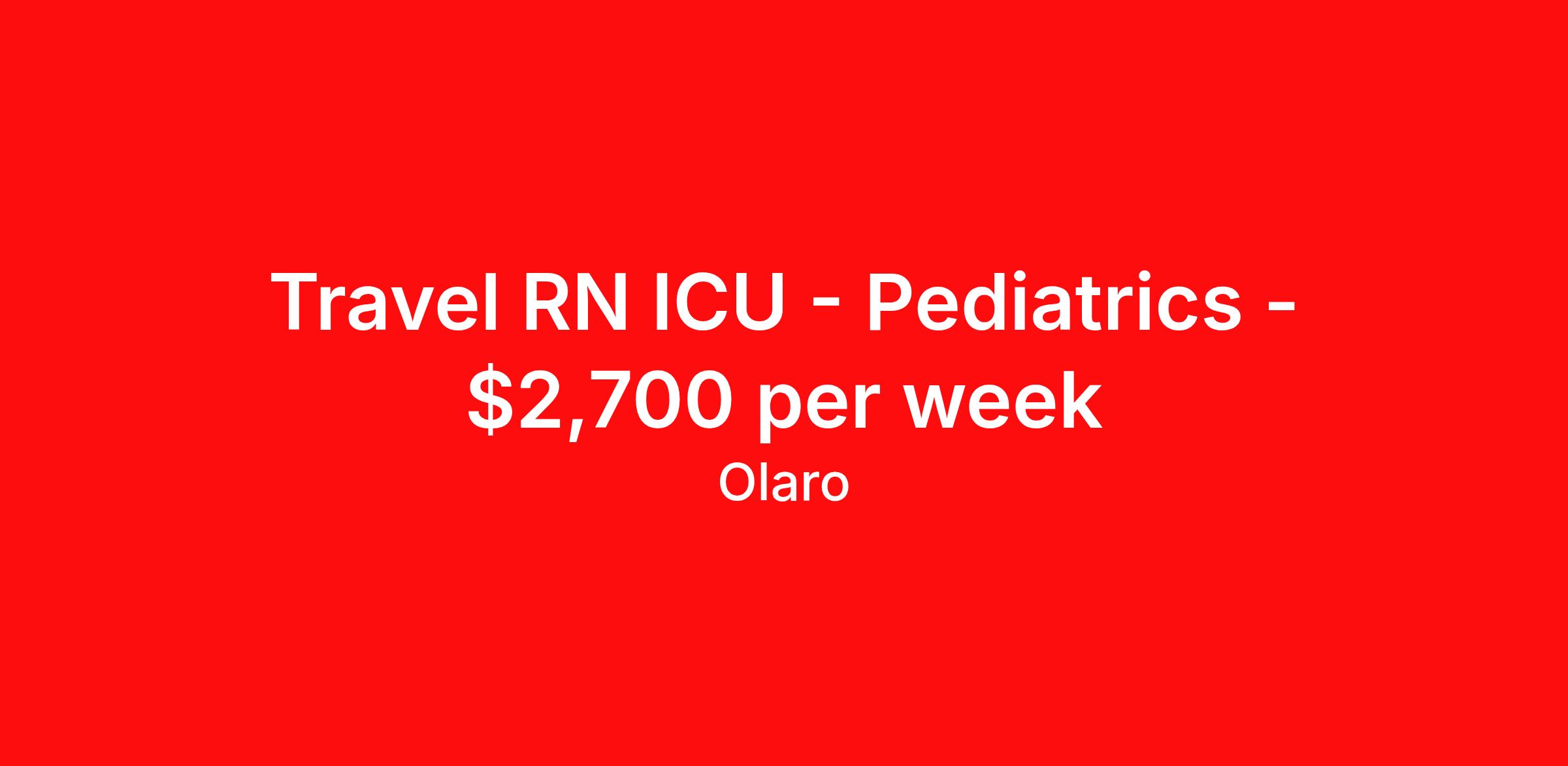 Travel RN ICU - Pediatrics - $2,700 per week