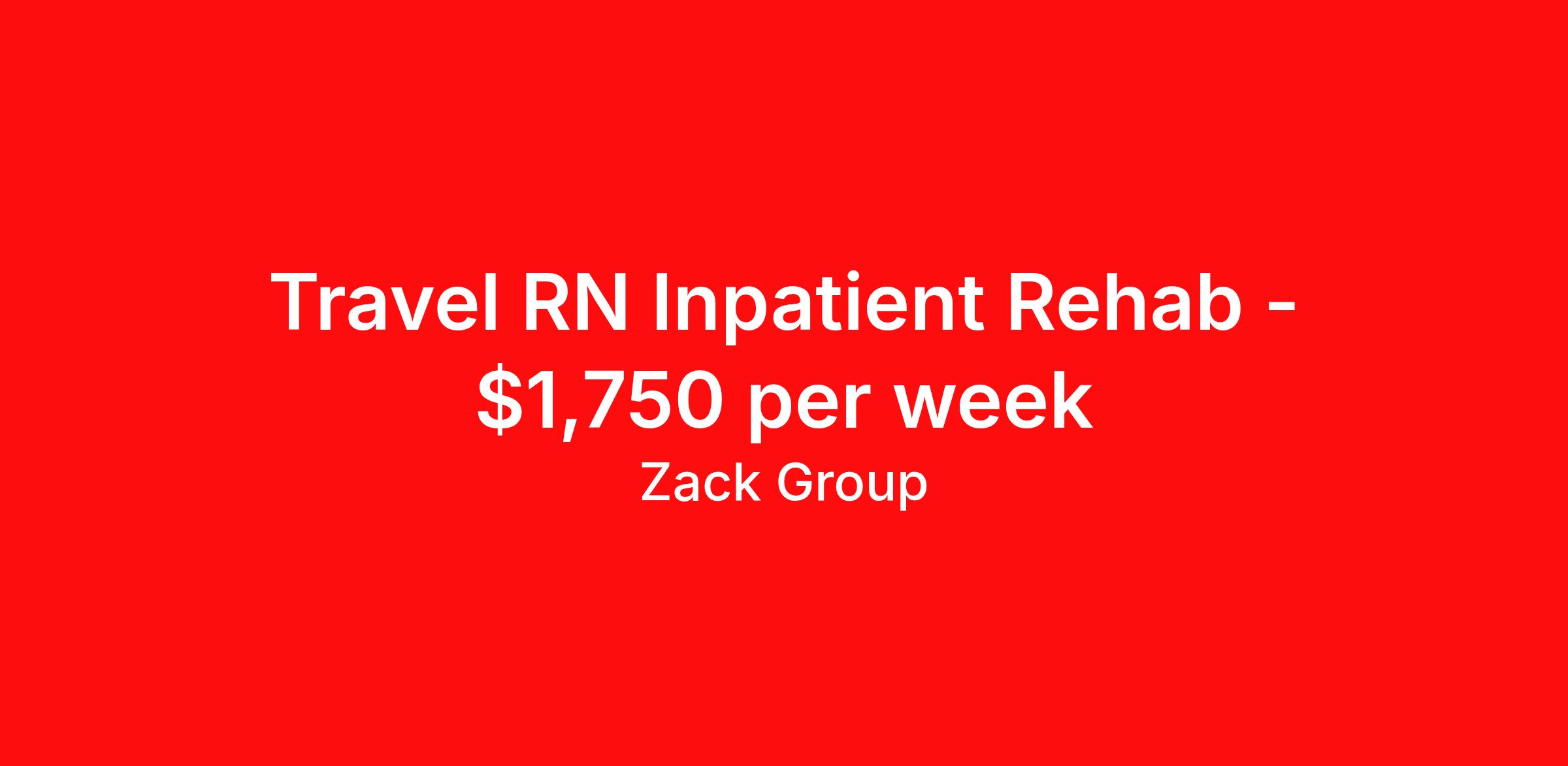 Zack Group is seeking a travel nurse RN Rehabilitation for a travel nursing job in Waco, Texas. Job Description & Requirements Specialty: Rehabilitation Discipline: RN Start Date: 05/17/2026 Duration: 13 weeks 36 hours per week Shift: 12 hours, days Employment Type: Travel Zack Group is currently seeking Rehab RN’s for positions in Waco, Texas. The ideal candidate will possess a current state or equivalent compact license. This is a 3x12 Days, 07:00:00-19:00:00, 12.00-3 position in the Rehab. Must have an active License in hand and have at least 2 years of recent Rehab experience as a RN . Requirements • Current Resume • Active License as an Rehab • Current BLS and/or ACLS and/or Specialty Certifications for Rehab • 2 current leadership references • Must be able to pass background/urine drug screening Compensation and Benefits We offer: • Highly competitive pay rates • Meals & Housing – Highest non-taxed available • Day 1 Health Benefits package • Weekly Pay • Teladoc, 401k and HRA/HSA • Refer a friend and earn extra cash! At Zack Group, we have your future in mind. It’s our priority! Please call or text us Today! Our Healthcare recruiters are standing by! Opt In: By providing your phone number and engaging with Lynn Care, LLC (also known as Zack Group), its affiliates, and contracted partners—including via text message, phone call, AI-generated call, AI-generated text, or email—you consent to receive communications regarding job opportunities. Message frequency may vary based on your engagement. By texting Zack Group or any associated entity, you agree to our Privacy Policy and Terms of Use ( You can reply STOP to cancel and HELP for help) Zack Group Job ID 36547883. Pay package is based on 12 hour shifts and 36.0 hours per week (subject to confirmation) with tax-free stipend amount to be determined. Posted job title: RN:Rehab,07:00:00-19:00:00 About Zack Group Zack Group has been active in the medical staffing sector for over 25 years, providing a wide range of services to top-tier healthcare facilities, including PRN/Per Diem, contract and permanent placement. Through its Traveling Nurse division, Zack Group places certified nursing professionals with healthcare facilities across the United States. Headquartered in Overland Park, KS, Zack Group has additional representation in Topeka and Wichita, Kansas, along with Tulsa, Oklahoma. Our local office partners with facilities throughout the Kansas, Missouri, and Oklahoma region while our travel office handles the whole country. Benefits 401k retirement plan Medical benefits Dental benefits Vision benefits