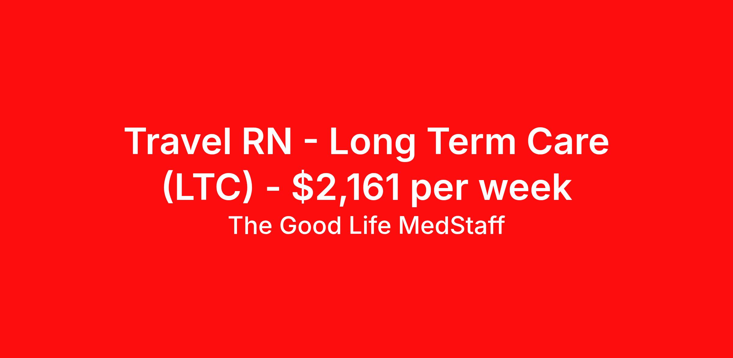 The Good Life MedStaff is seeking a travel nurse RN Long Term Care (LTC) Long Term Care for a travel nursing job in West Burlington, Iowa. Job Description & Requirements Specialty: Long Term Care Discipline: RN Start Date: 04/06/2026 Duration: 13 weeks 40 hours per week Shift: 8 hours, evenings Employment Type: Travel The Good Life MedStaff Job ID 36055398. Pay package is based on 8 hour shifts and 40.0 hours per week (subject to confirmation) with tax-free stipend amount to be determined. Posted job title: RN:Long Term Care (LTC) - RN,10:00:00-18:00:00 About The Good Life MedStaff We are a Travel Nursing Agency, connecting compassionate caregivers, who love adventure, with amazing opportunities. We want to bring you to The Good Life! Connecting, Caring, and Competing for the best opportunities to help you reach your goals! Benefits Medical benefits Dental benefits Vision benefits 401k retirement plan Referral bonus