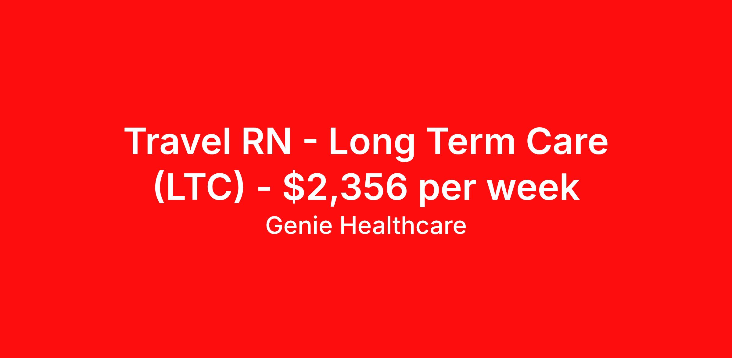 Genie Healthcare is seeking a travel nurse RN Long Term Care (LTC) Long Term Care for a travel nursing job in West Burlington, Iowa. Job Description & Requirements Specialty: Long Term Care Discipline: RN Start Date: 04/06/2026 Duration: 13 weeks 40 hours per week Shift: 8 hours, evenings Employment Type: Travel Genie Healthcare is looking for a RN to work in Long Term Care (LTC) for a 12.86 weeks travel assignment located in West Burlington, IA for the Shift (5x8hr evenings – please verify shift with recruiter, 15:00:00-23:00:00, 8.00-5). Pay and benefits packages are estimated based on client bill rate at time the job was posted. These rates are subject to change. Exact pay and benefits vary based on several things, including, but not limited to, guaranteed hours, client changes in bill rate, experience, etc. Benefits: Medical Insurance, Dental Insurance, Vision Insurance, 401(k) with company matching (50% up to 6% of what you contribute) Genie Healthcare Job ID 17920605. Pay package is based on 8 hour shifts and 40.0 hours per week (subject to confirmation) with tax-free stipend amount to be determined. Posted job title: RN:Long Term Care (LTC),15:00:00-23:00:00 About Genie Healthcare Genie Healthcare is one of the fastest growing Nurse Travel Agencies in the USA. Genie serves hundreds of facilities and has over 4000 current travel RN contracts open at any given time. Genie provides travel RN’s flexibility, support, top pay scale, housing and the 1 rated, multi-state health insurance coverage. Genie Healthcare carries with it a commitment to providing a comprehensive level of service and quality care. Growing from a small team of eager recruiters to a company with satisfied clients in nearly every corner of the nation, delivering excellence in patient and customer care is the key to Genie’s success. The management team has 20 years of experience in workforce solutions and staffing in medical and non-medical fields, roles ranging from Clerical job to Cardiologist to software developer to CEO.