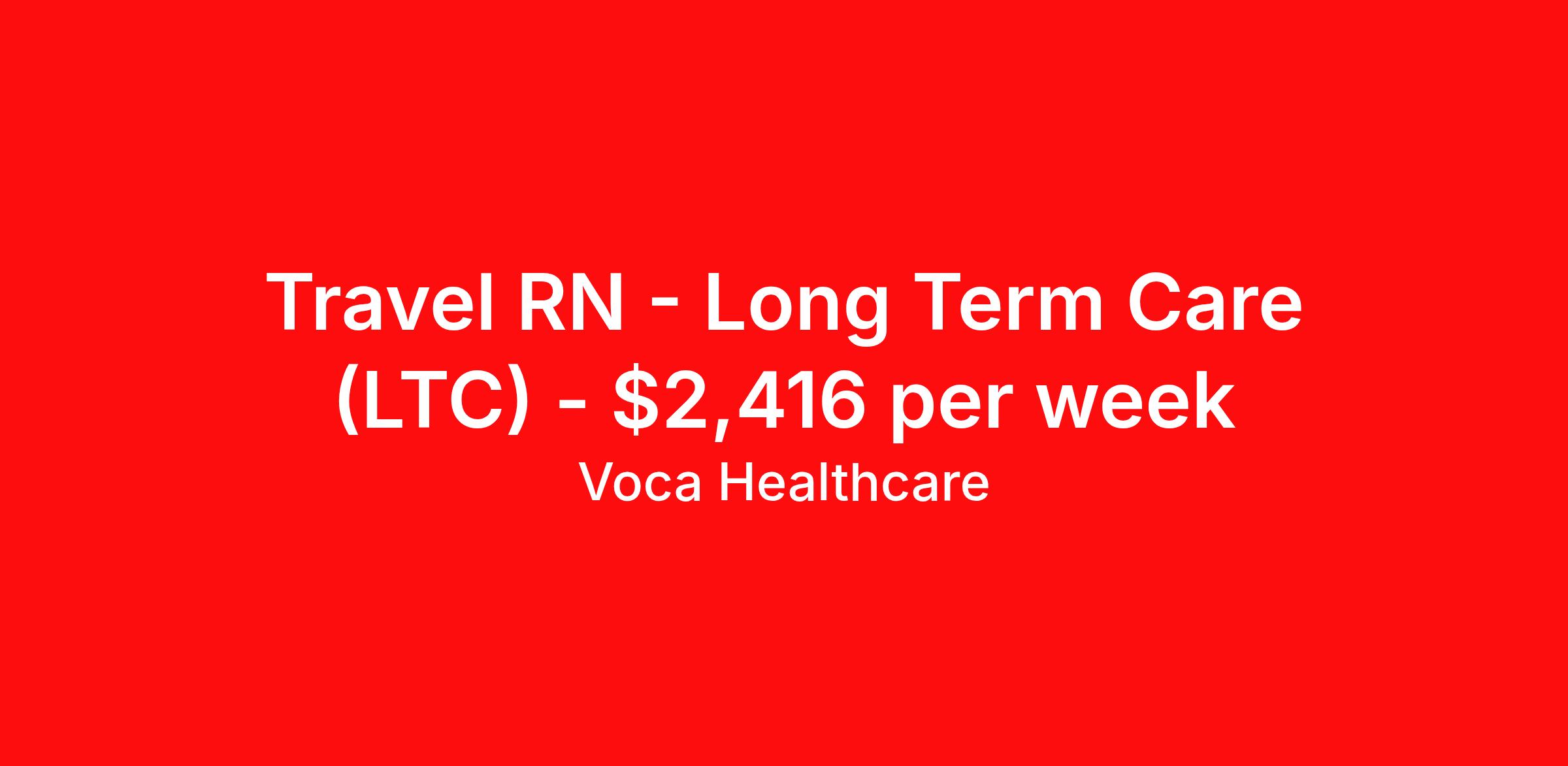 Voca Healthcare is seeking a travel nurse RN Long Term Care (LTC) Long Term Care for a travel nursing job in West Burlington, Iowa. Job Description & Requirements Specialty: Long Term Care Discipline: RN Start Date: 04/06/2026 Duration: 13 weeks 40 hours per week Shift: 8 hours, nights Employment Type: Travel Benefits available on 1st of the month after start: Holiday pay Weekly pay Retention bonus 401k retirement plan Medical benefits Dental benefits Vision benefits Referral bonus Are you an experienced Long Term Care RN looking for your next exciting travel assignment, or are you ready to start your travel healthcare career? At Voca, we offer an unmatched experience for healthcare professionals with a travel-first culture that prioritizes your needs and supports your career growth. We understand that every traveler is unique, which is why we provide personalized support from our experienced team of recruiters who are dedicated to matching you with the right assignments. Join Voca today, where you will enjoy a rewarding career and a full suite of benefits designed to ensure your success and well-being. As a Long Term Care RN with Voca, you’ll have the opportunity to work in dynamic healthcare settings, gaining valuable experience while receiving competitive compensation and support every step of the way. Qualifications: Minimum of 2 years of recent experience as a Long Term Care RN preferred, but we are open to exceptional candidates with a strong passion. Valid certification and/or licensure in the state of practice, if applicable. Demonstrated ability to maintain a high level of professionalism and composure, especially during stressful and fast-paced moments in the healthcare setting. Valid Driver’s License and the ability to travel between assignment locations. Ability to pass a background check and drug screen to meet healthcare industry standards. Why Choose Voca? Comprehensive Benefits Package: We offer Health, Dental, and Vision Insurance to ensure that you and your loved ones are well taken care of. Life and Disability Insurance for added peace of mind. 401(k) options to help you save for your future with employer matching. Certification and Licensure Reimbursement to support your professional development. Generous Referral Bonus Program – earn rewards for referring your qualified peers to join the Voca team. Weekly Direct Deposit ensures timely access to your earnings. At Voca, You Are Our Priority: Travel-First Culture: We understand that travel assignments offer unique challenges, so we ensure a flexible and supportive work environment that focuses on your success. Personalized Support: Work with a dedicated recruiter who will be your advocate throughout your journey, helping you navigate each assignment and providing personalized guidance to ensure your goals are met. Strong Relationships: Voca’s culture fosters long-term relationships with our travelers. We care about your career, your needs, and your future.- Whether you're a seasoned Long Term Care RN or ready to take the next step in your travel healthcare career, Voca is the perfect place for you to grow, learn, and thrive. Apply today to connect with one of our talented recruiters and begin your next adventure! Voca Healthcare Job ID 17920184. Pay package is based on 8 hour shifts and 40.0 hours per week (subject to confirmation) with tax-free stipend amount to be determined. Posted job title: RN:LTC,21:00:00-05:00:00 About Voca Healthcare As a Voca Traveler, you will gain new clinical skills, visit amazing places and meet awesome healthcare professionals. As a travel health professional, your experience and dedication to patient care is in high demand throughout the United States. Whether you are a veteran traveler looking for your next opportunity, or you are looking to travel for the first time, Voca is here to support you. Voca’s experienced and dedicated travel team works in concert with you every step of the way. Our long-standing partnerships with some of the most respected and recognized healthcare organizations in the country allow us to identify career opportunities to help you increase your knowledge and experience while working with some of the best physicians and healthcare professionals in the world. At Voca, we strongly believe a better career results in a happier you. We are here to help you find a position that is professionally and personally rewarding. Benefits Holiday Pay 401k retirement plan Medical benefits Dental benefits Vision benefits Guaranteed Hours