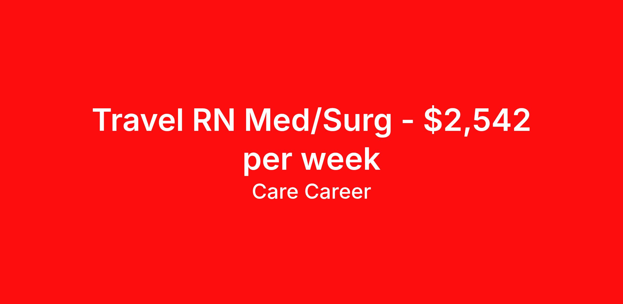 Care Career is seeking a travel nurse RN Med Surg for a travel nursing job in Peoria, Illinois. Job Description & Requirements Specialty: Med Surg Discipline: RN Start Date: 04/20/2026 Duration: 13 weeks 36 hours per week Shift: 12 hours, nights Employment Type: Travel Care Career Job ID 36219476. Pay package is based on 12 hour shifts and 36.0 hours per week (subject to confirmation) with tax-free stipend amount to be determined. Posted job title: RN Med Surg About Care Career Care Career brings together a portfolio of leading healthcare staffing organizations, each delivering specialized talent solutions across the industry. Wherever you want to go, We Make It Happen. With travel nursing jobs across the country, you can discover the possibilities that create the lifestyle and financial position that you have dreamed of. Care Career is a modern, transparent staffing firm creating the ultimate community of US. Benefits Referral bonus Weekly pay Medical benefits Continuing Education Dental benefits Vision benefits